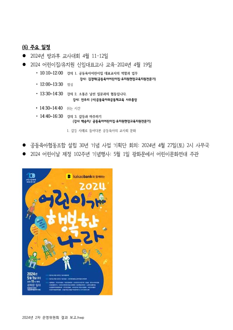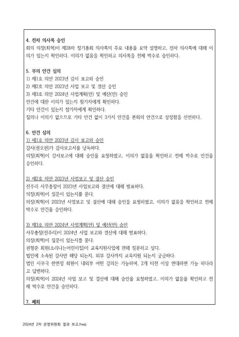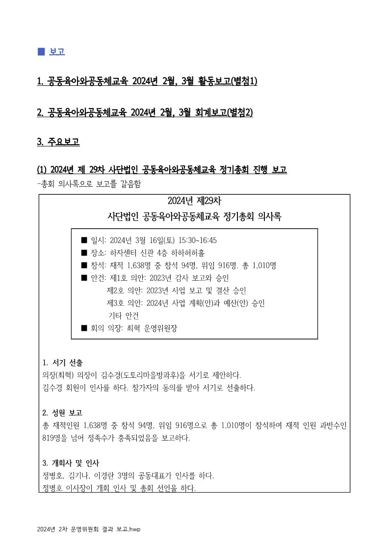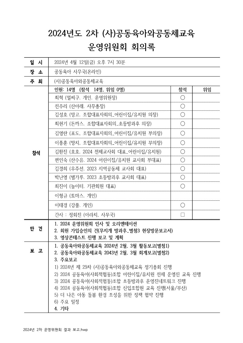 2024년 4월 운영위원회 결과 보고 드립니다. (24년 3-4월 활동보고, 결산보고 포함)