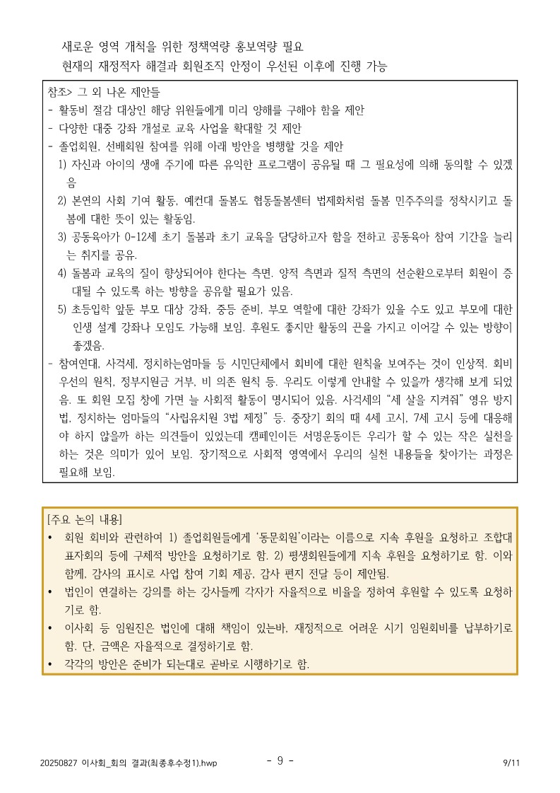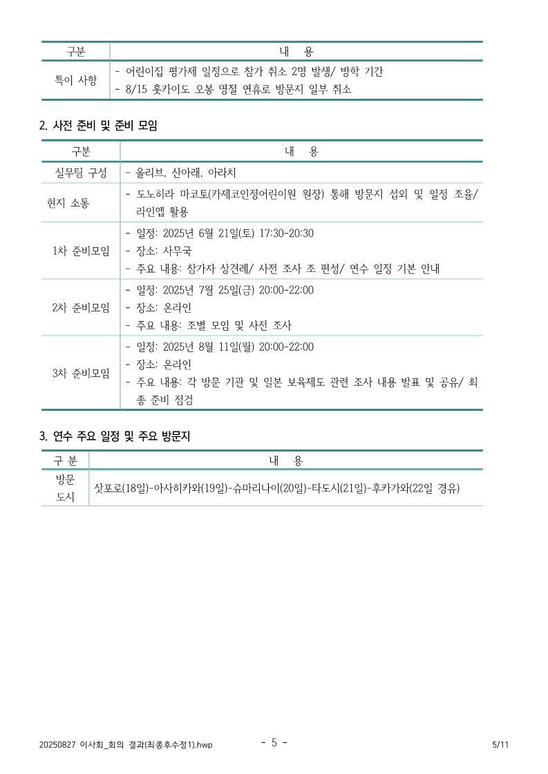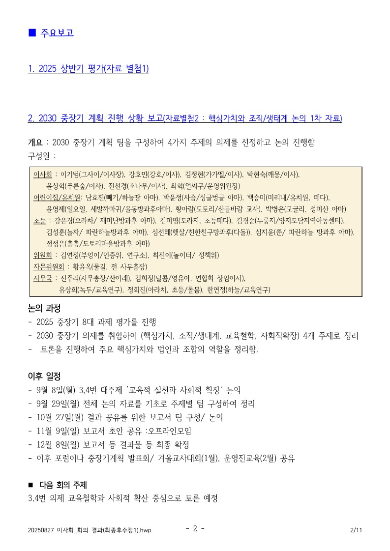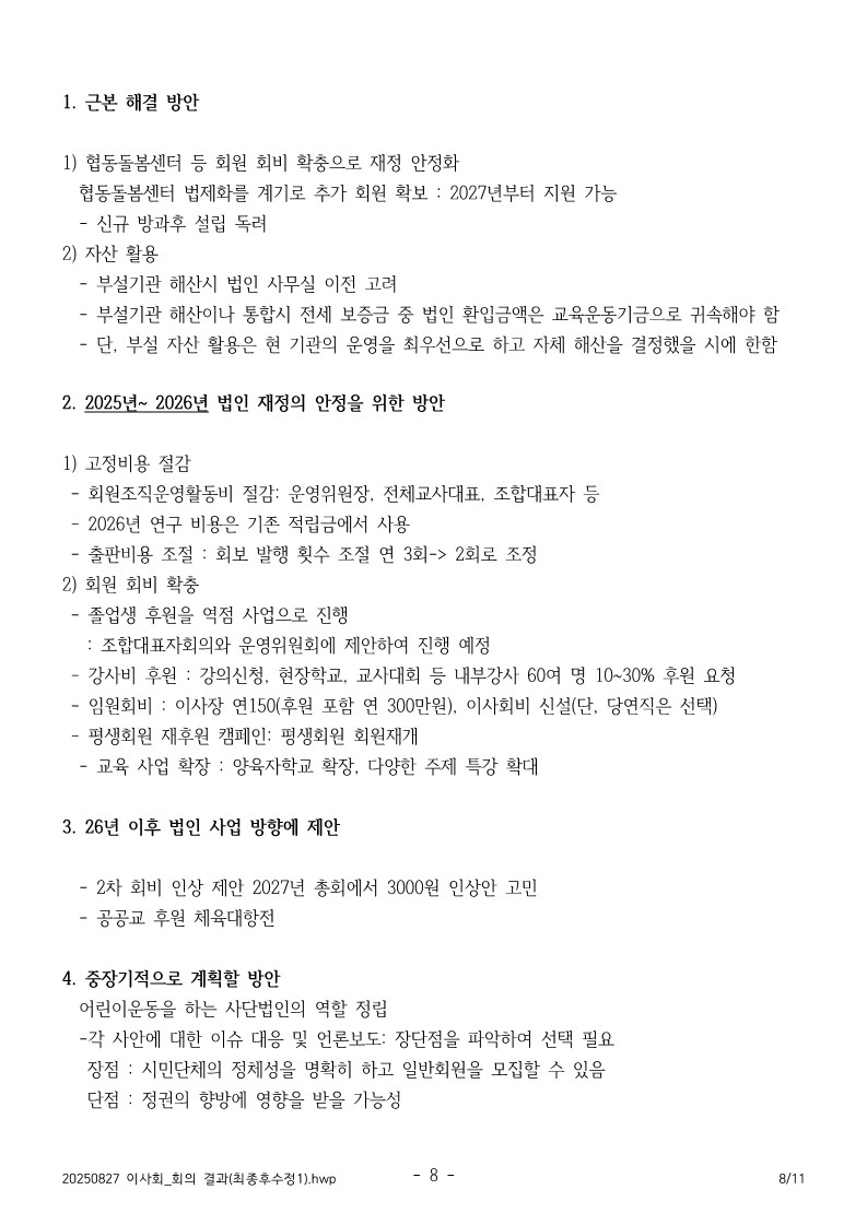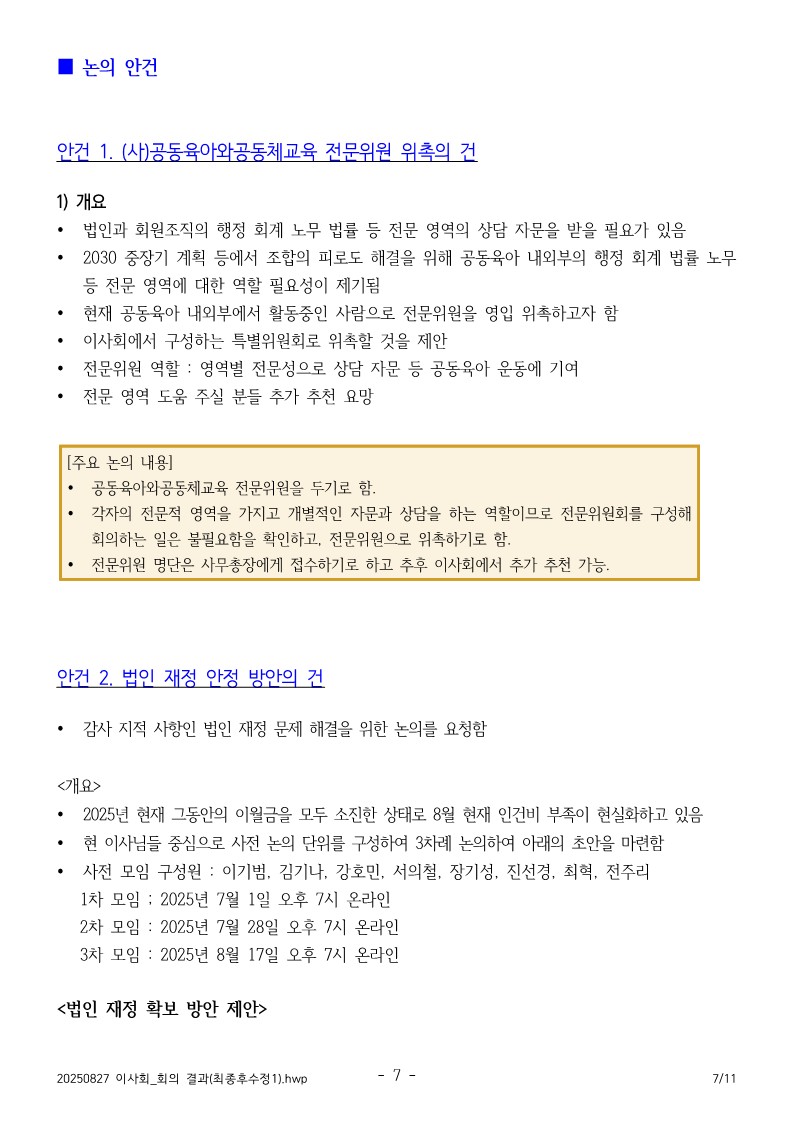 2025년 8월 29일 개최된 정기 이사회 결과 보고드립니다
