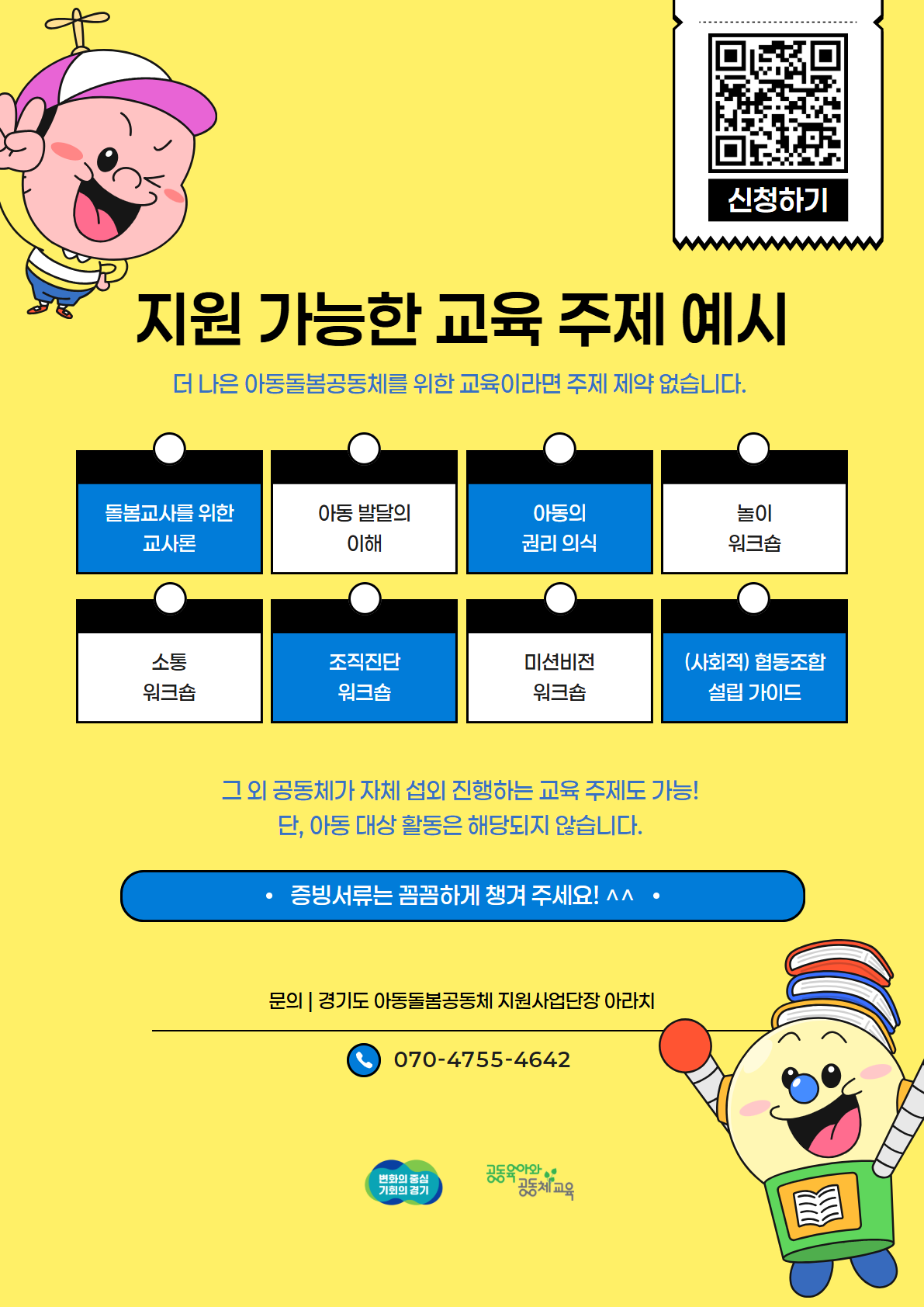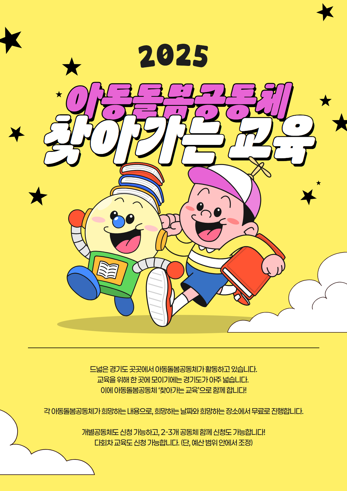 경기도 아동돌봄공동체 '찾아가는 교육'으로 찾아갑니다! 페이지 정보 작성자 운영자 작성일25-09-16 18:03 조회280회 본문 https://forms.gle/apDwGVotGanM5xvB7 댓글목록 등록된 댓글이 없습니다. 이전글 다음글 목록
