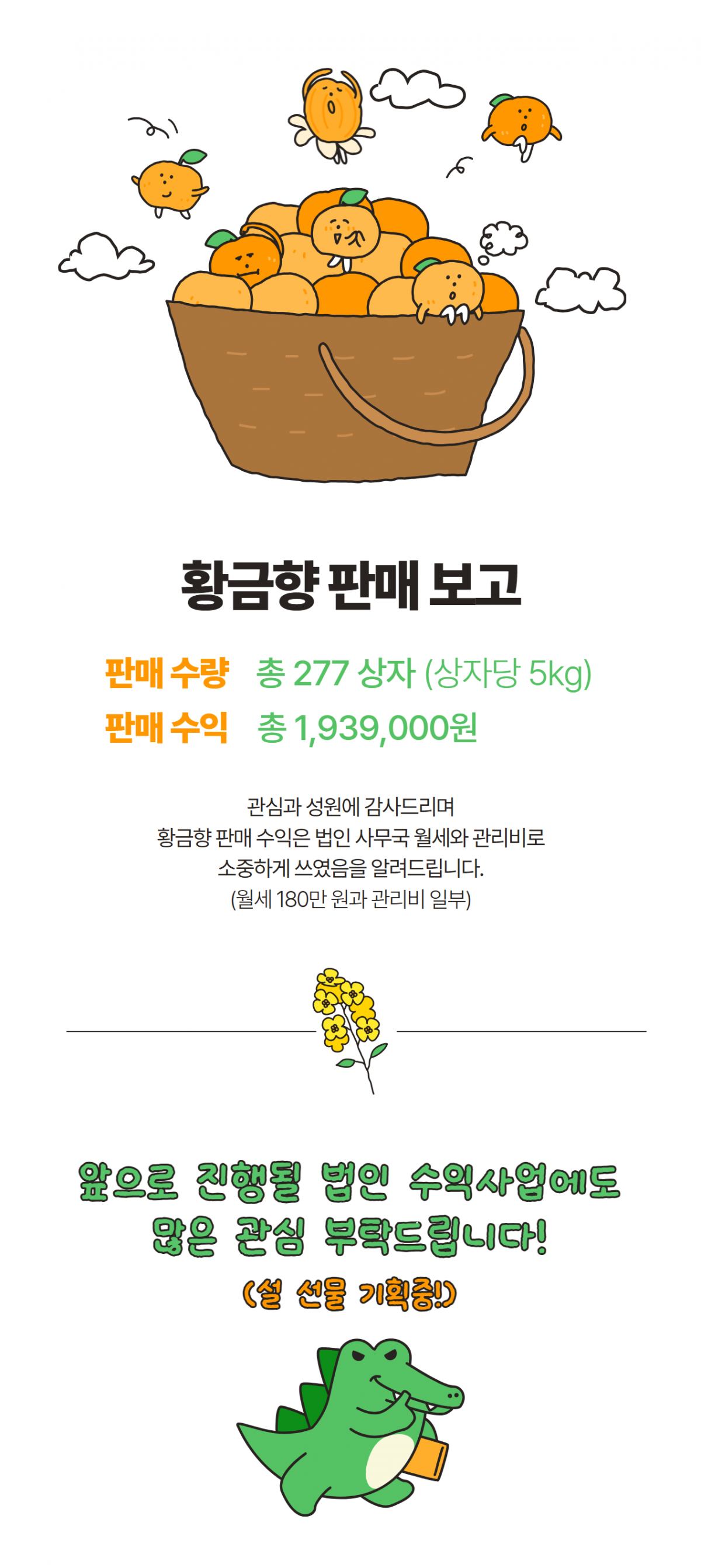 법인 수익사업 황금향 판매에 함께 해주셔서 감사합니다. (판매 보고) 페이지 정보 작성자 운영자 작성일26-01-09 12:01 조회156회 본문 댓글목록 등록된 댓글이 없습니다. 이전글 다음글 목록