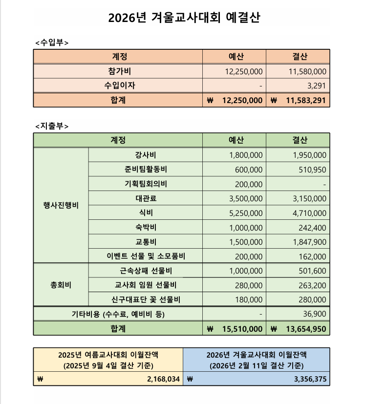 2026 겨울 교사대회 결산