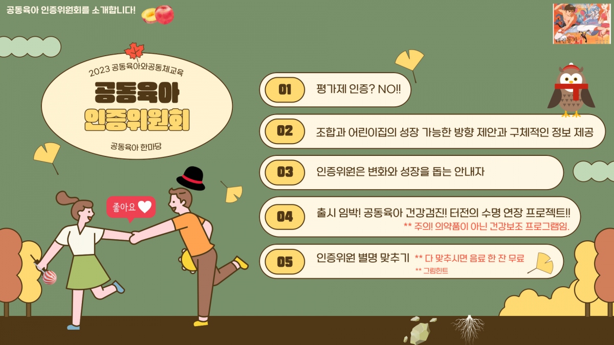 (사)공동육아와공동체교육 인증위원회에서 함께 할 인증위원을 모십니다!