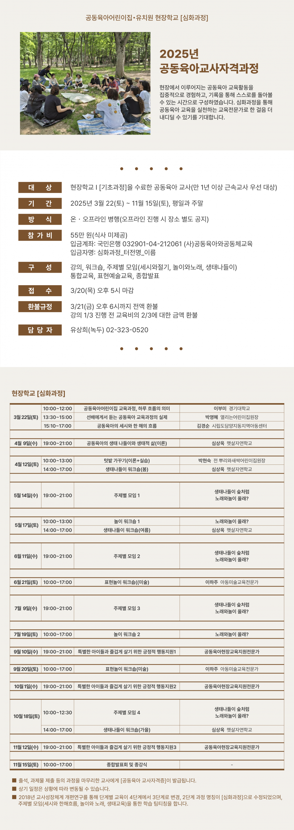 2025 공동육아어린이집유치원 현장학교[심화과정] 일정 안내