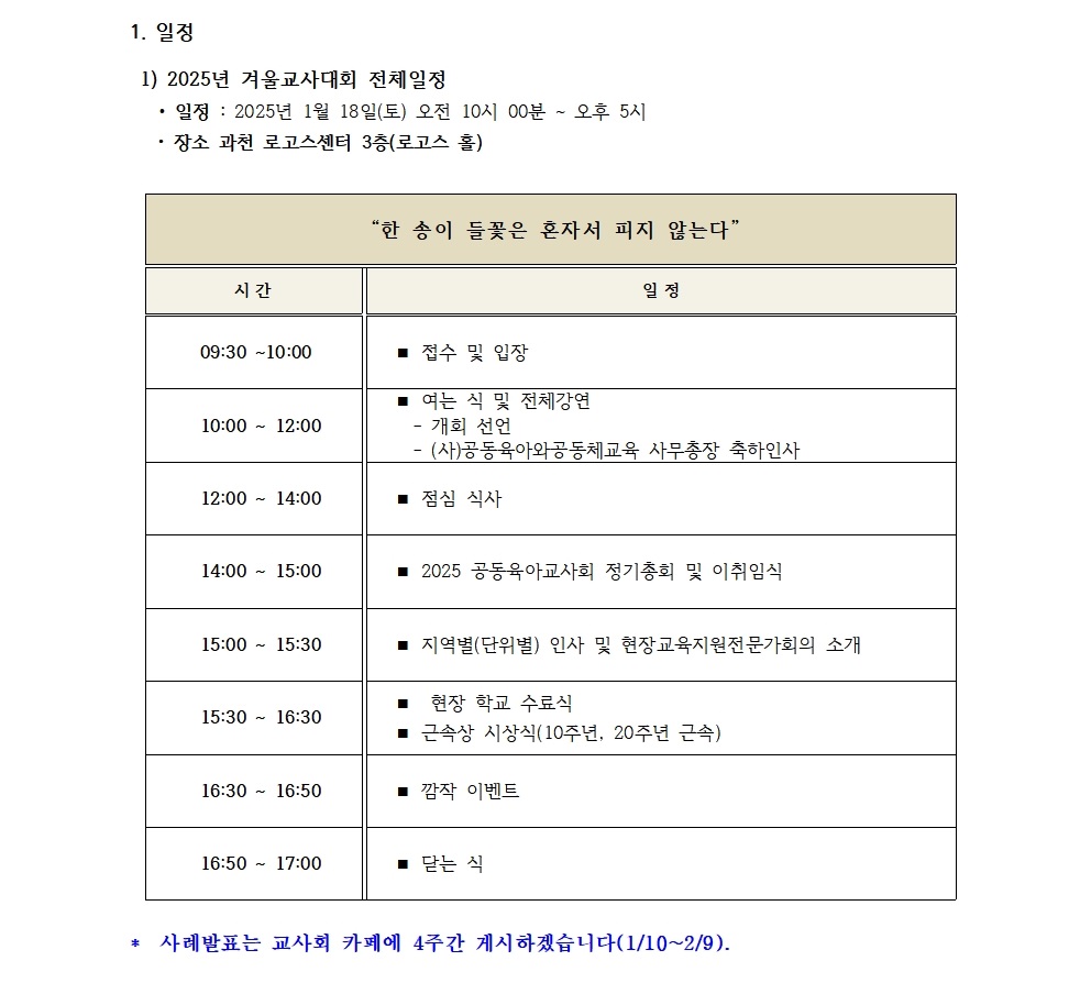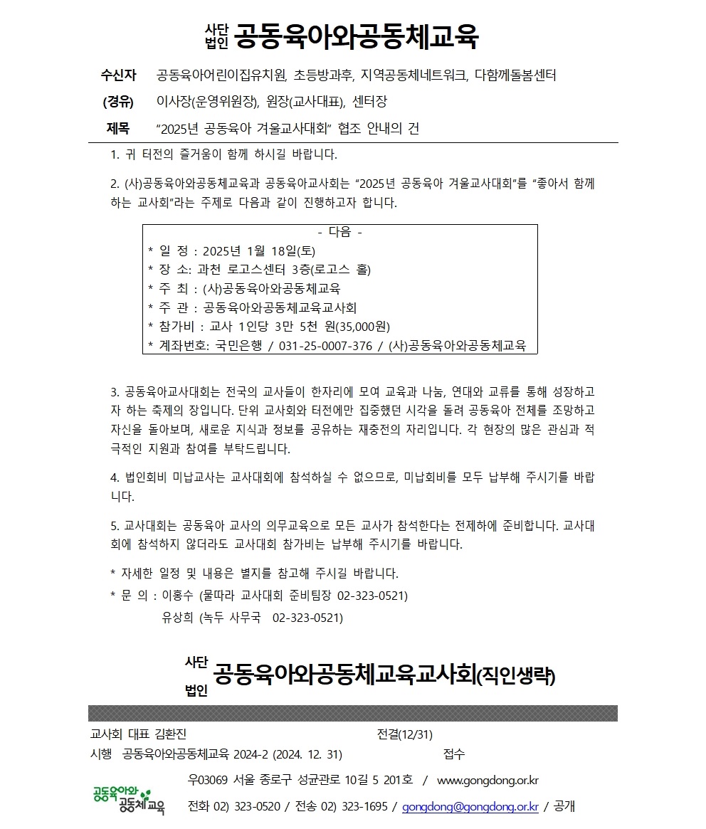 2025 공동육아 겨울교사대회를 진행합니다(수정 공지_참가비 포함)