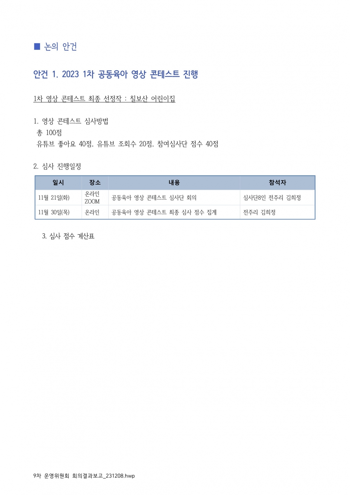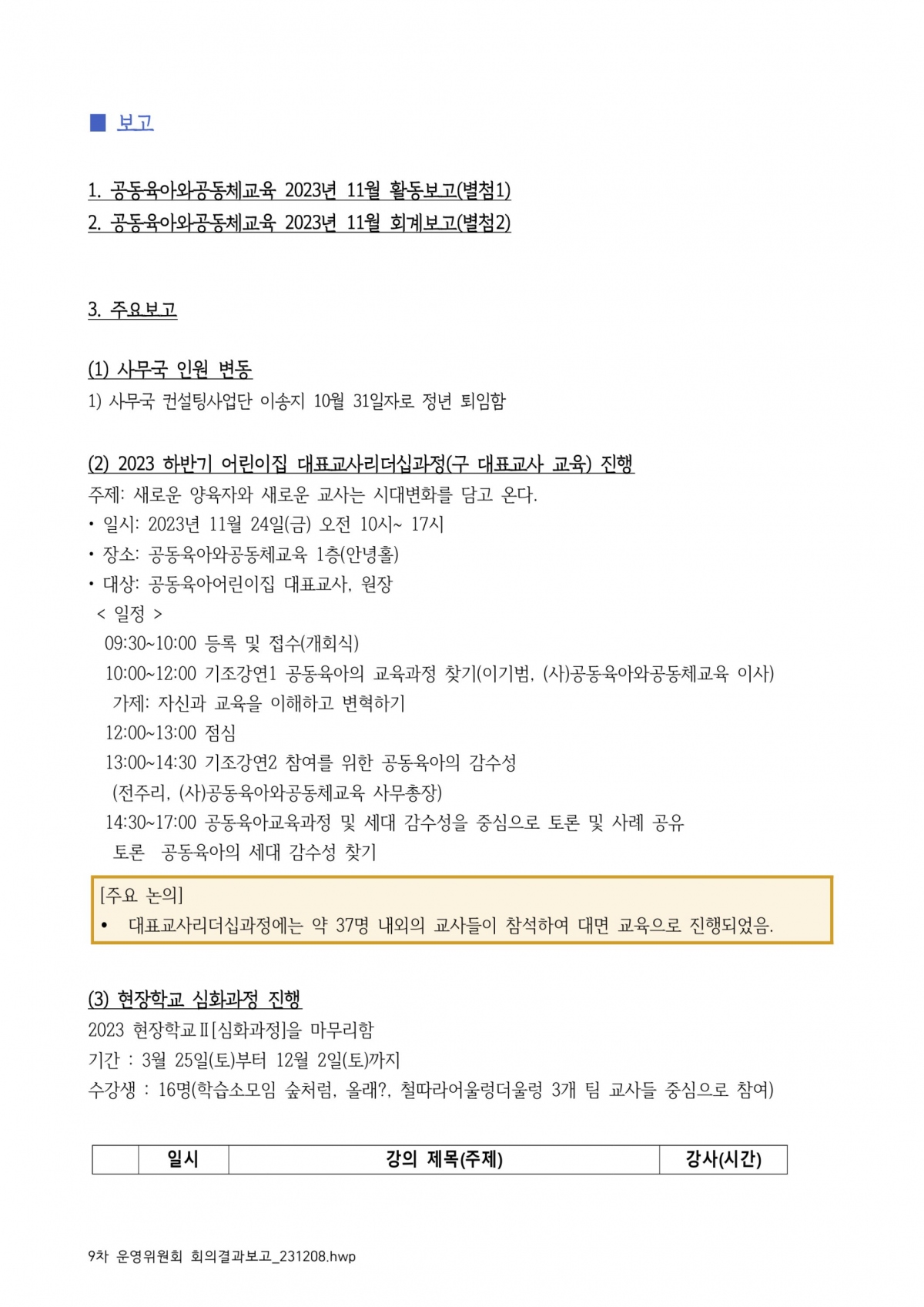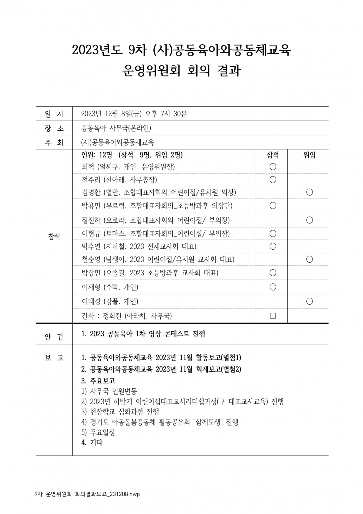 12월 운영위원회 결과 보고 드립니다. (11월 활동 보고 및 결산 보고 포함)