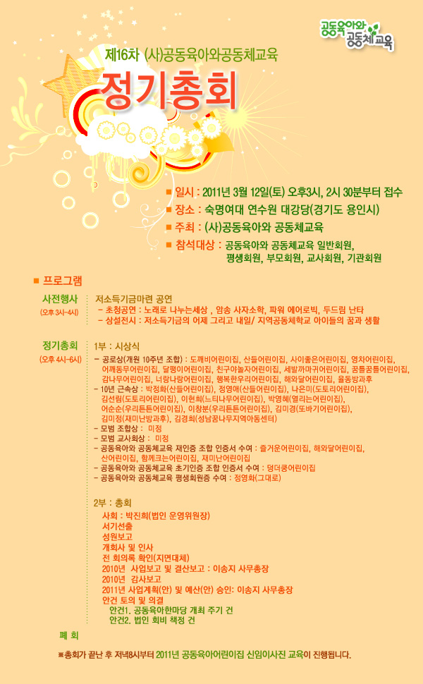 [총회자료집(수정) 첨부] 제16차 공동육아와 공동체교육 정기총회 공고
