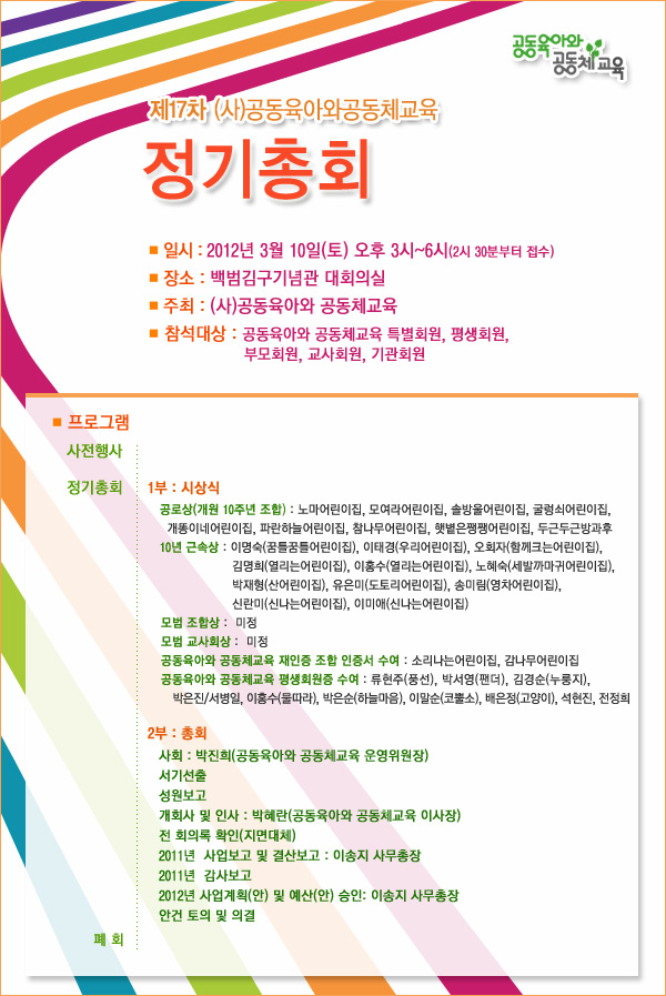2012년 제17차 공동육아와 공동체교육 정기총회 공고(총회 자료집 첨부!)