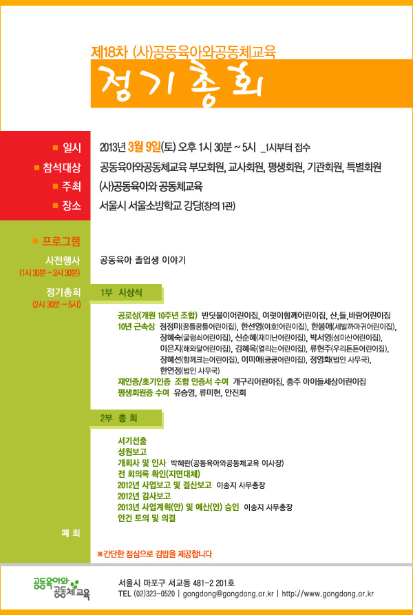 ★총회자료집 첨부★ 제18차 공동육아와공동체교육 정기총회 공고