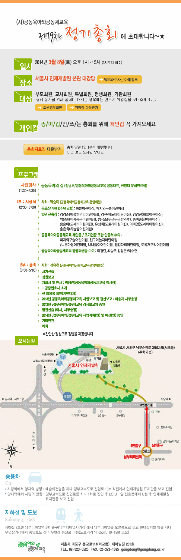 ★총회자료집 첨부★ 제19차 공동육아와공동체교육 정기총회 최종 공고