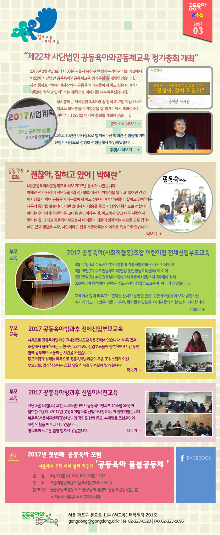 e-공동육아 119호 (2017년 3월) 페이지 정보 작성자 운영자 작성일17-04-07 16:44 조회1,128회 본문 댓글목록 운영자님의 댓글 운영자 작성일 17-04-28 19:04 모든 커뮤니티에 공지했습니다. (4/28) <p>모든 커뮤니티에 공지했습니다. (4/28)</p> 이전글 다음글 목록