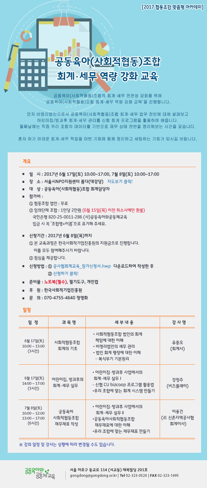 [일정변경] 공동육아(사회적협동)조합 회계·세무 역량 강화 교육