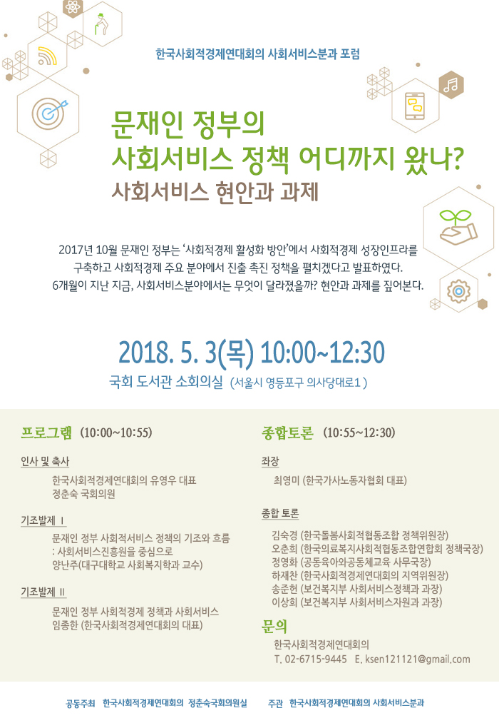 5월 3일, '문재인 정부의 사회서비스 정책 어디까지 왔나?-사회서비스 현안과 과제' 포럼 안내