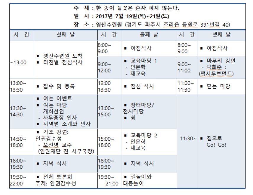 * 장 소 : 영산수련원(경기도 파주시 조리읍 등원로 391번길 40)