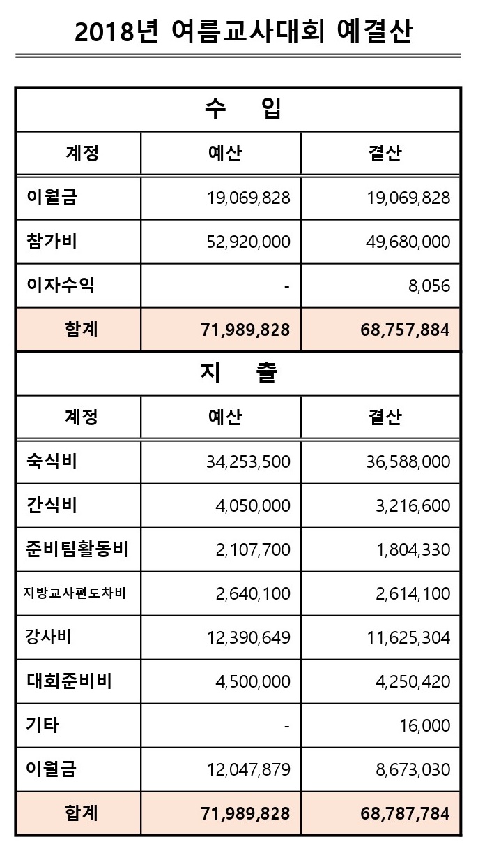 2018년 공동육아 여름교사대회 회계 보고 페이지 정보 작성자 운영자 작성일18-09-18 13:18 조회1,230회 본문 2018년 7월 19일(목)~21일(토) 진행되었던 여름교사대회 결산자료를 보고합니다.본 자료는 결산전 사항으로 결산시 변경사항이 발생할 수 있습니다. 댓글목록 등록된 댓글이 없습니다. 이전글 다음글 목록
