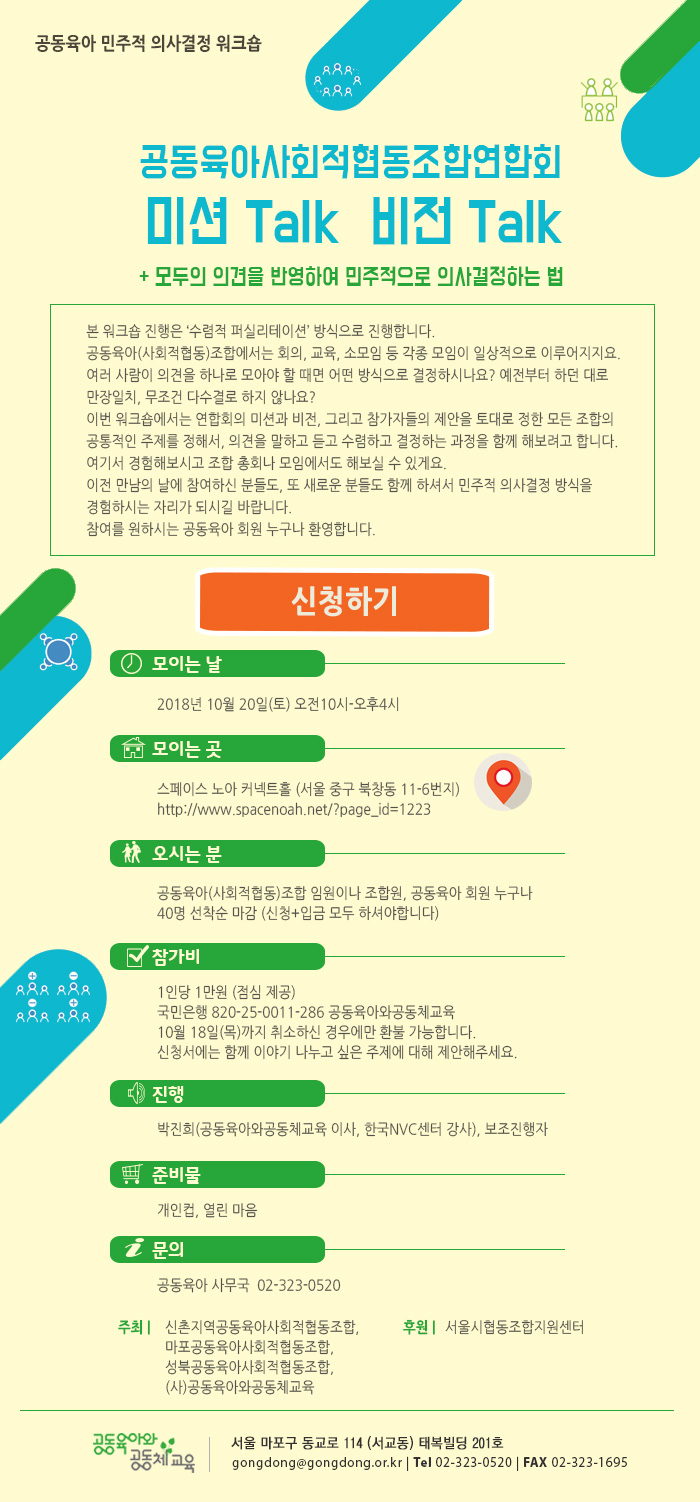 공동육아 민주적 의사결정 워크숍이 열립니다. - 10월6일(토)