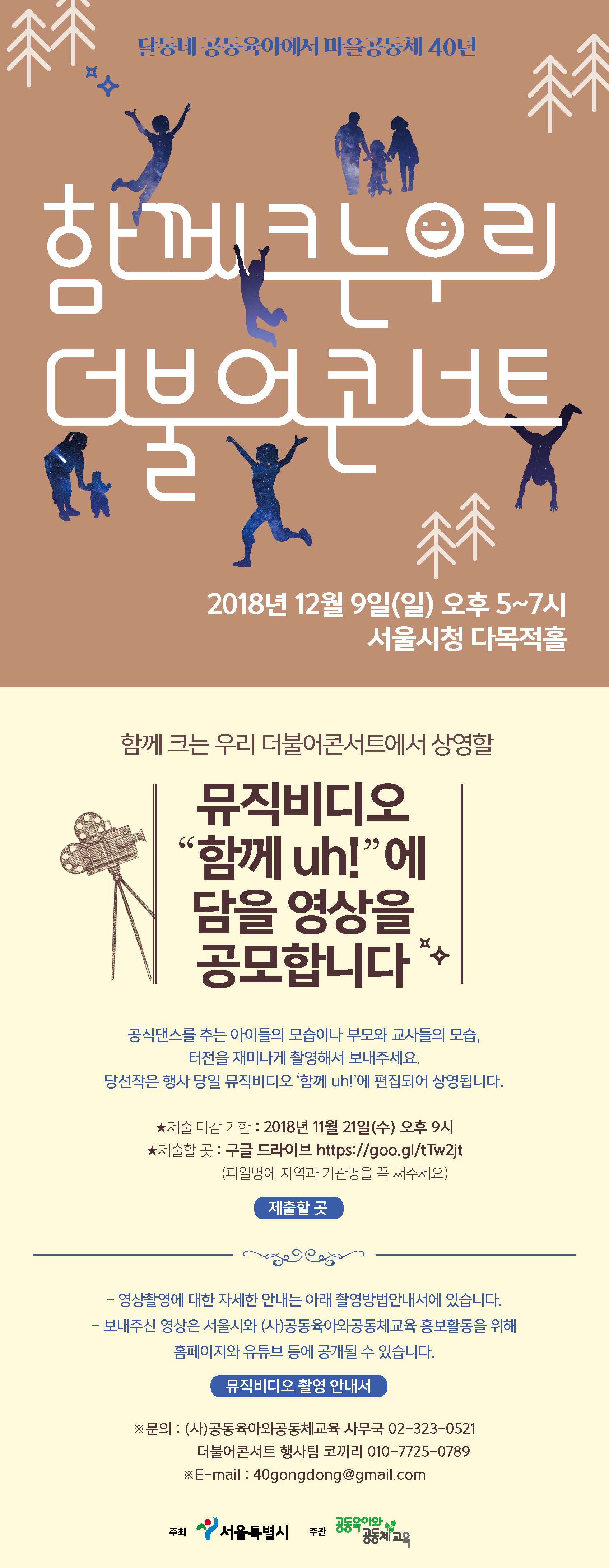 함께 크는 우리 더불어콘서트에서 상영할 뮤직비디오 "함께 uh!"에 담을 영상을 공모합니다.