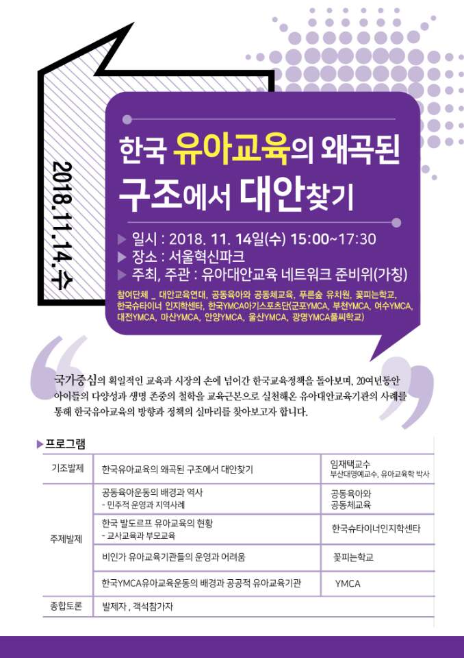 [토론회] 한국 유아교육의 왜곡된 구조에서 대안찾기 페이지 정보 작성자 사무국 작성일18-11-08 14:21 조회1,146회 본문 댓글목록 등록된 댓글이 없습니다. 이전글 다음글 목록