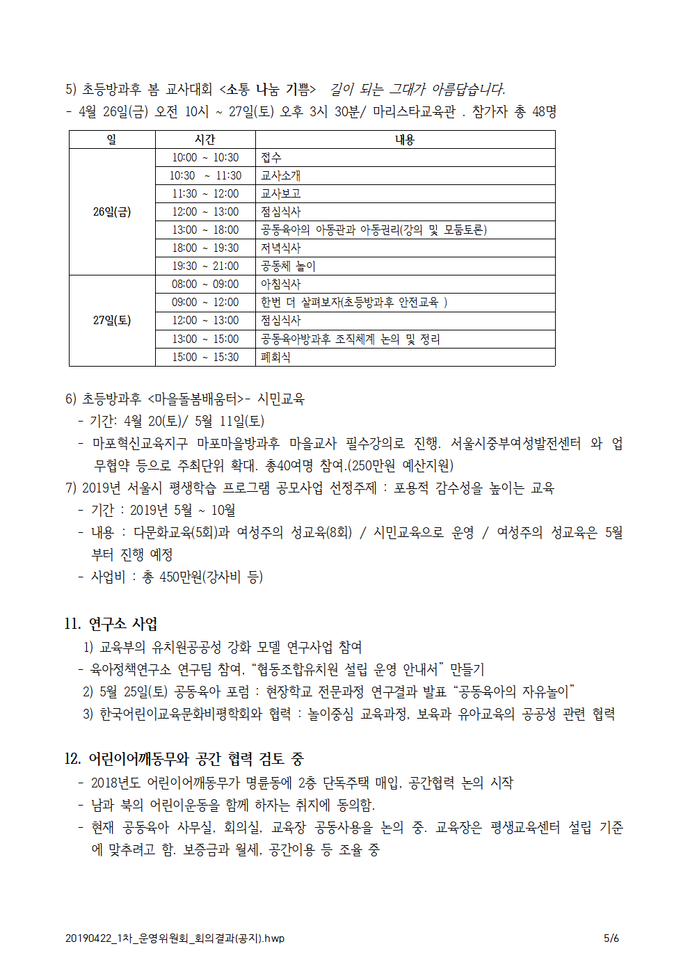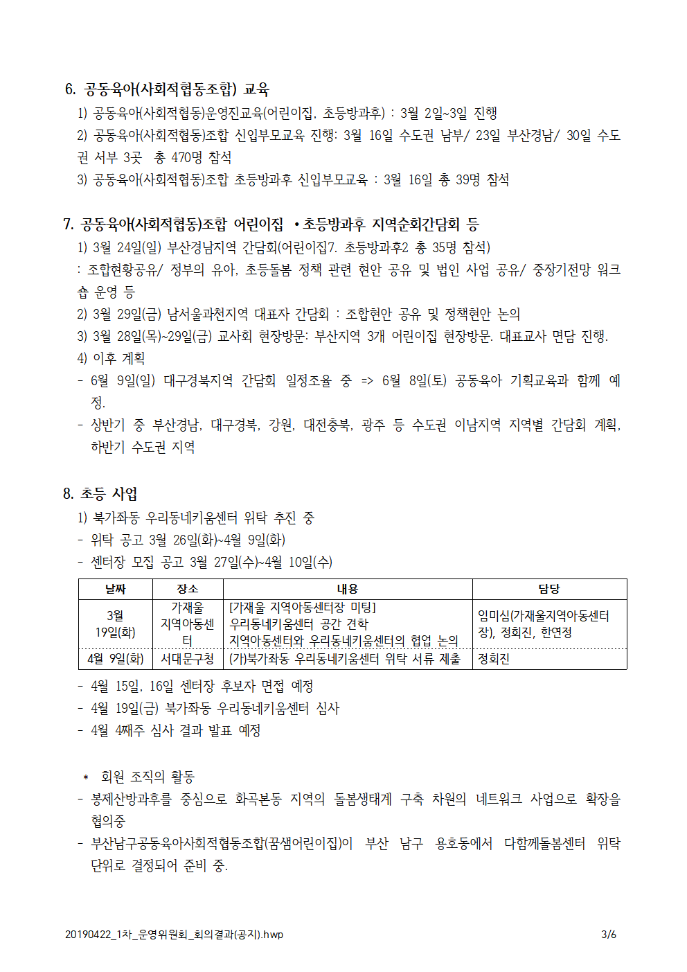 (사)공동육아와공동체교육 2019년도 1차 운영위원회 회의결과