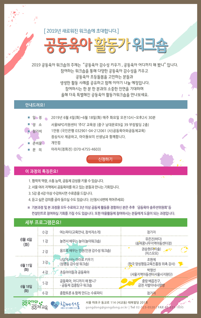 2019 공동육아 활동가 워크숍에 초대합니다.