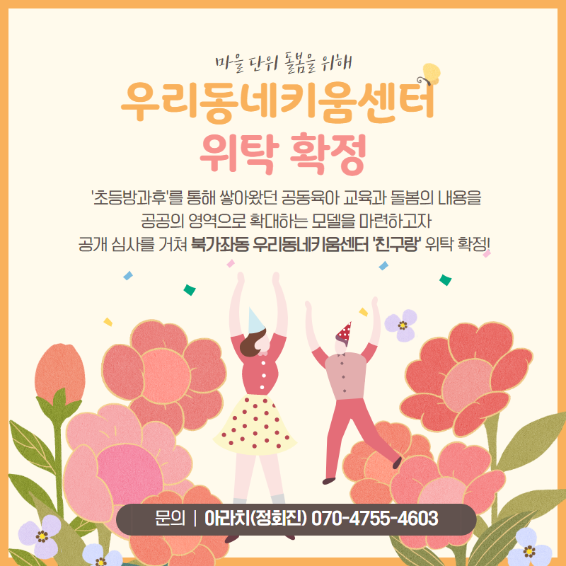 그러던 중, 좋은 기회가 닿았고, 공개 심사를 거쳐 (가)북가좌동 우리동네키움센터 위탁이 확정되었습니다!