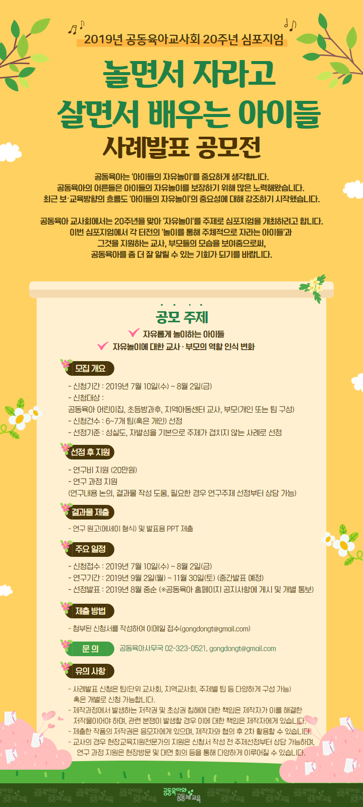 2019년 공동육아교사회 20주년 심포지엄 사례발표 공모전을 엽니다.