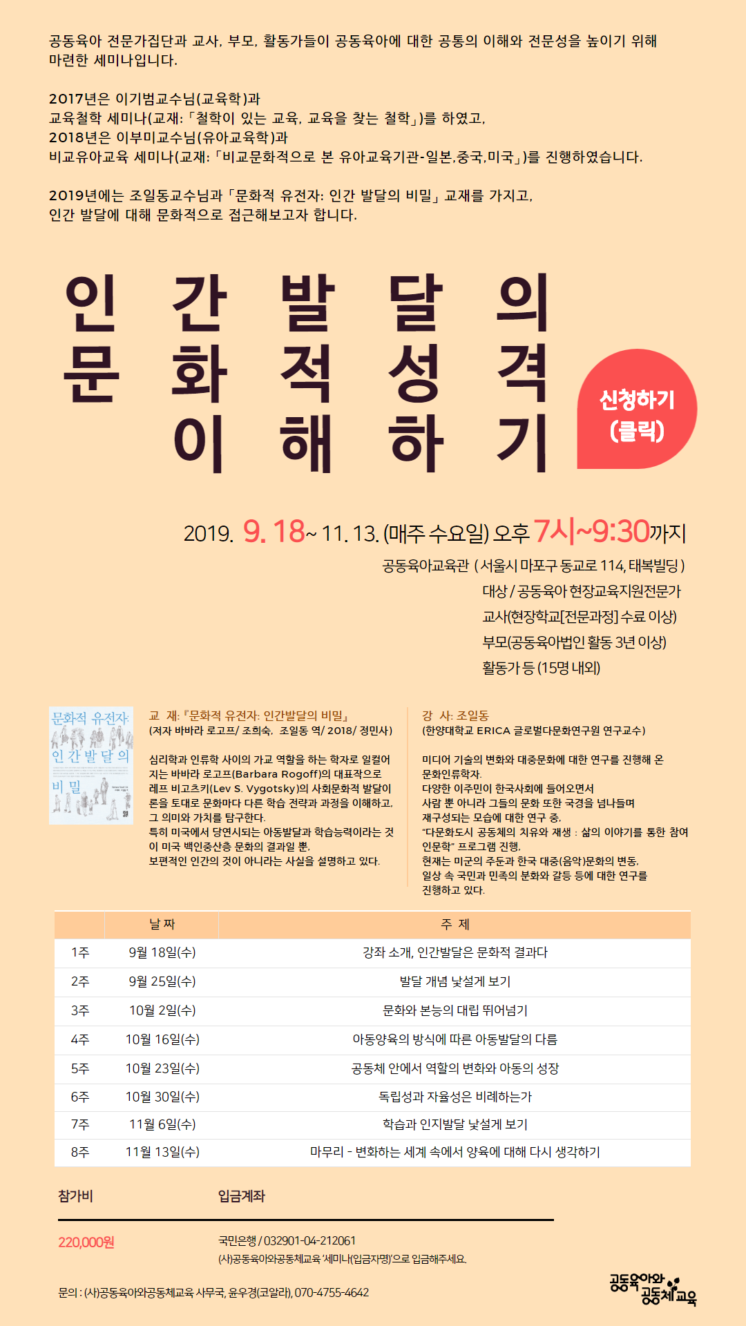 2019년 문화세미나 '인간 발달의 문화적 성격 이해하기' 페이지 정보 작성자 운영자 작성일19-08-09 10:25 조회1,639회 본문 Untitled Document 댓글목록 등록된 댓글이 없습니다. 이전글 다음글 목록