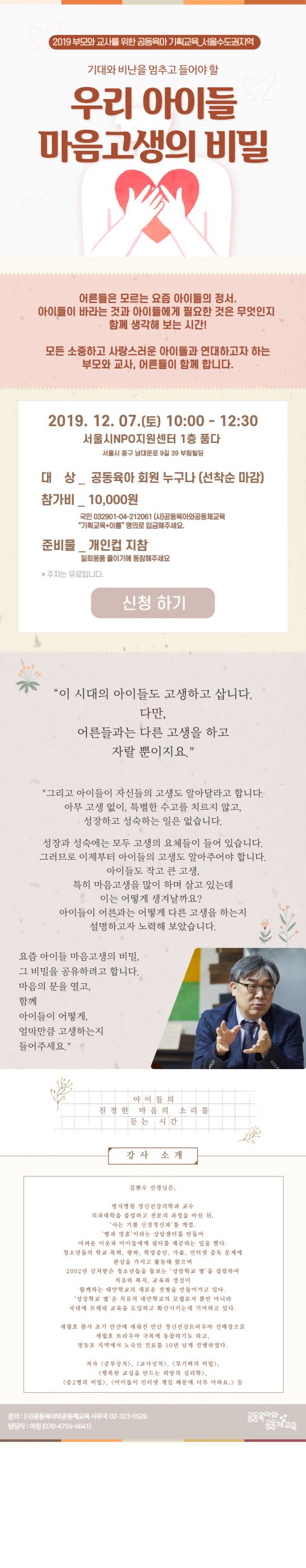2019기획교육_부모와교사를위한 공동육아교육_서울수도권지역] 12월 7일(토) 우리 아이들 마음고생의 비밀.