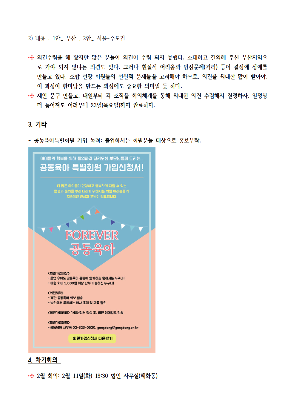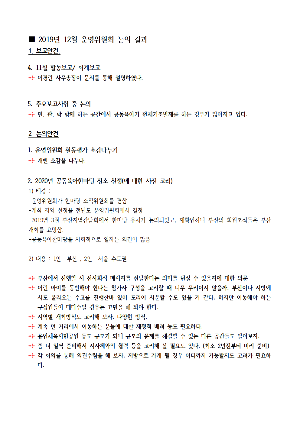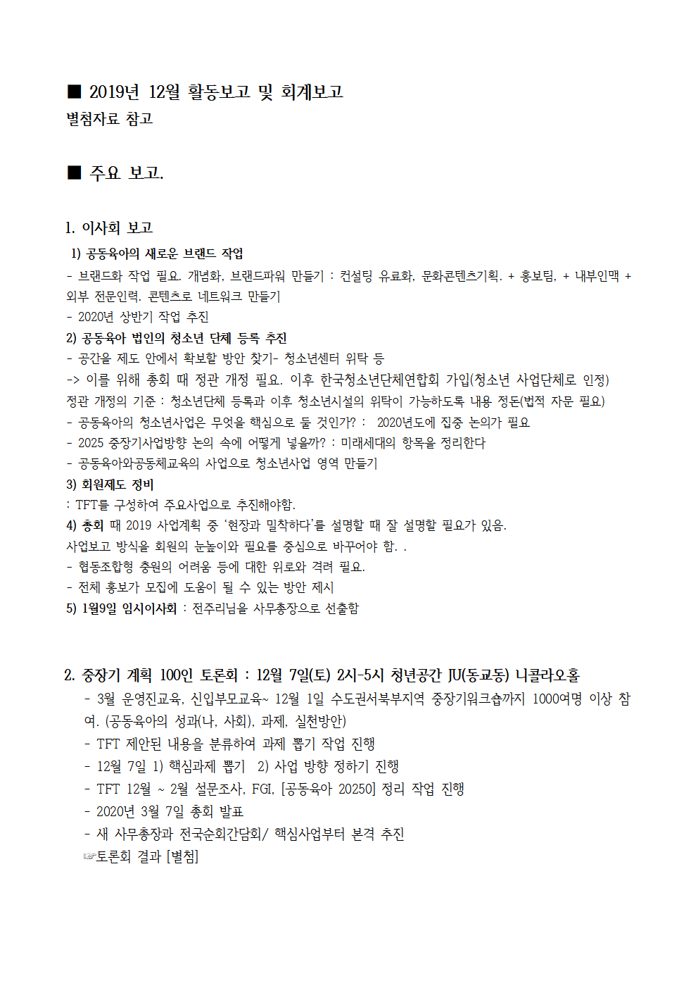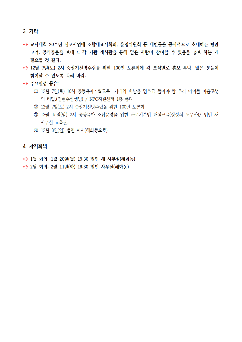 (사)공동육아와공동체교육 2019년 8차 운영위원회 회의 결과