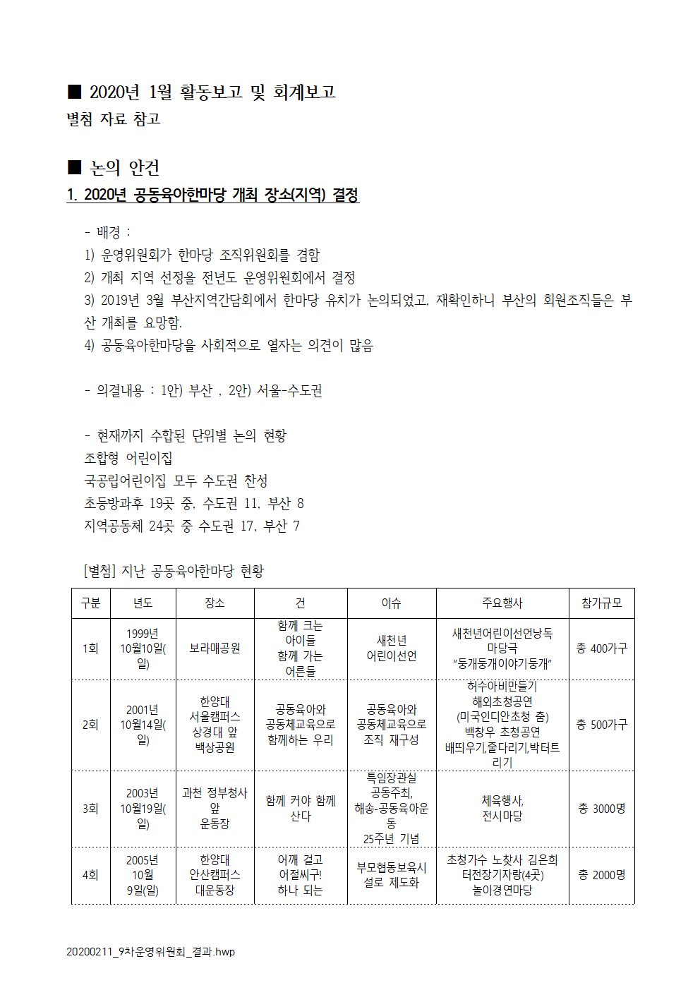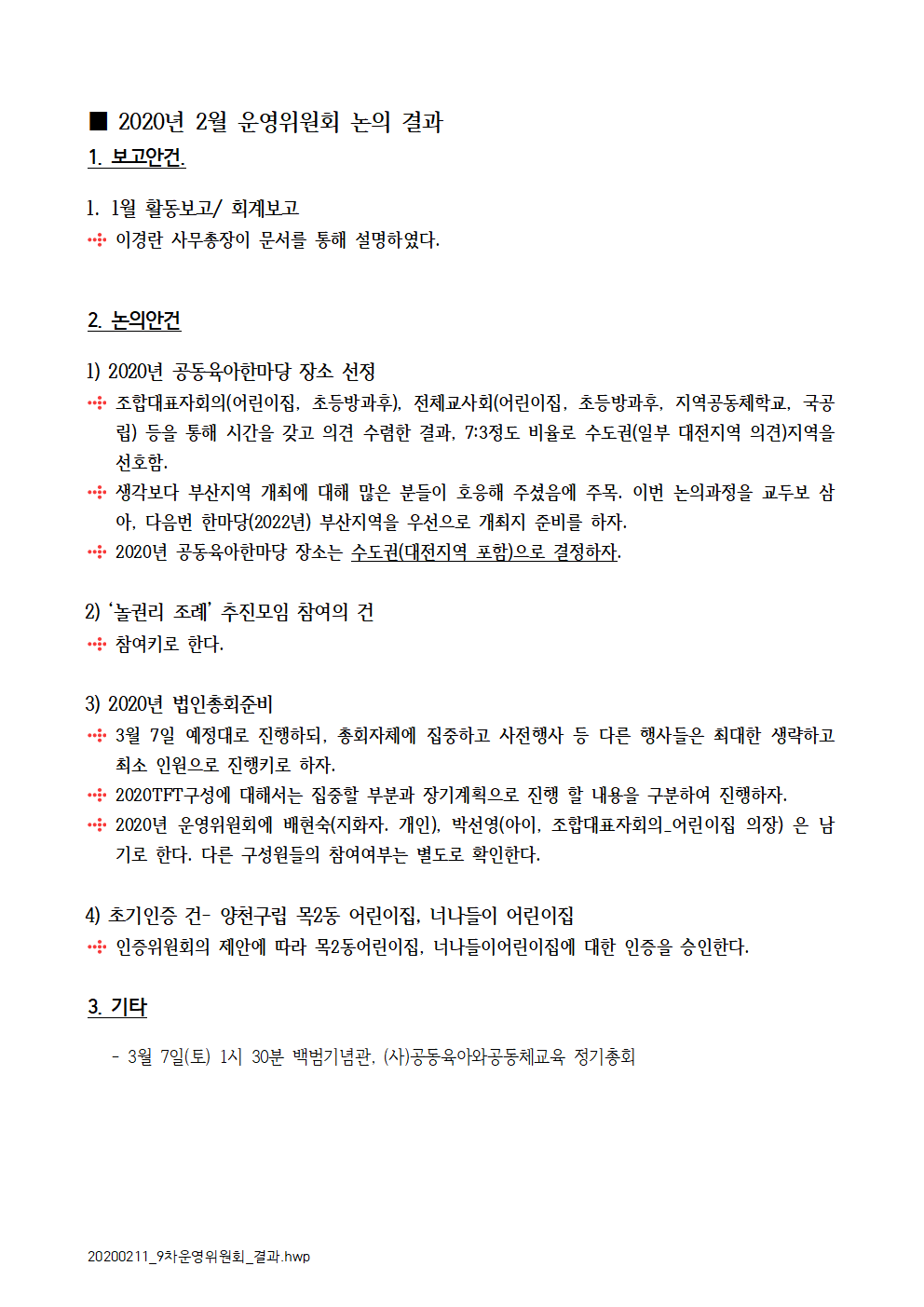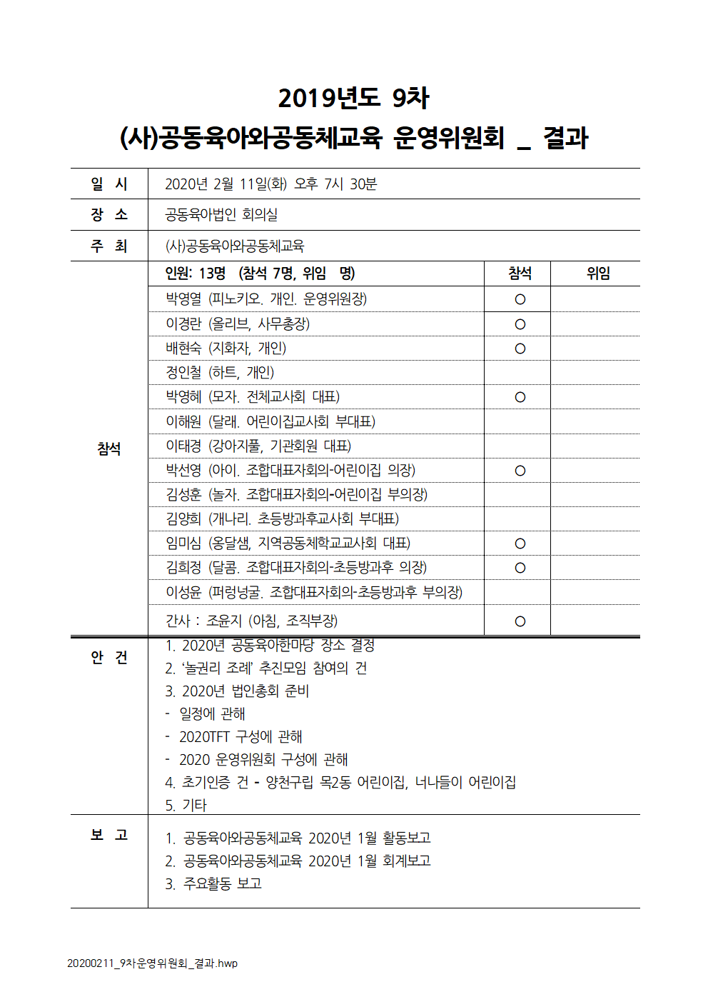 (사)공동육아와공동체교육 2020년 1월 운영위원회 회의_결과