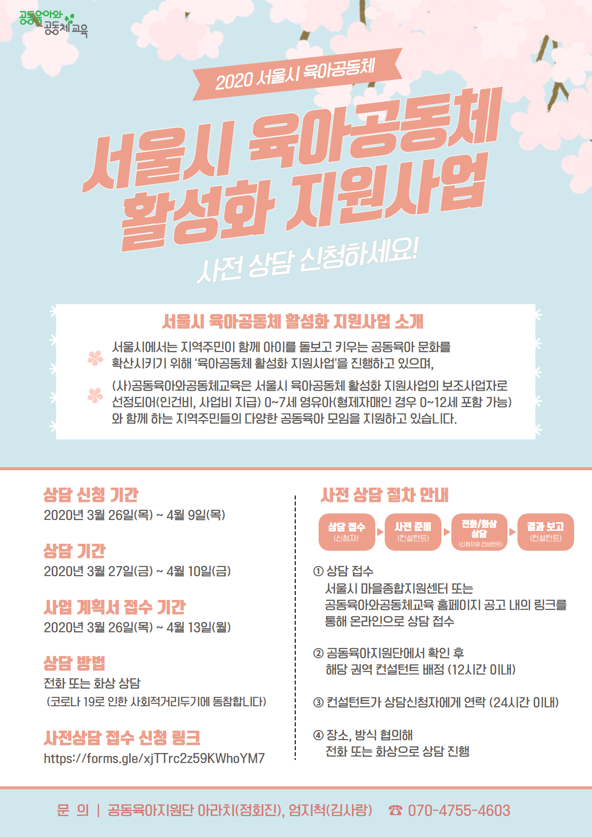 2020 서울시 육아공동체 활성화 지원사업 사전 상담 신청하세요!