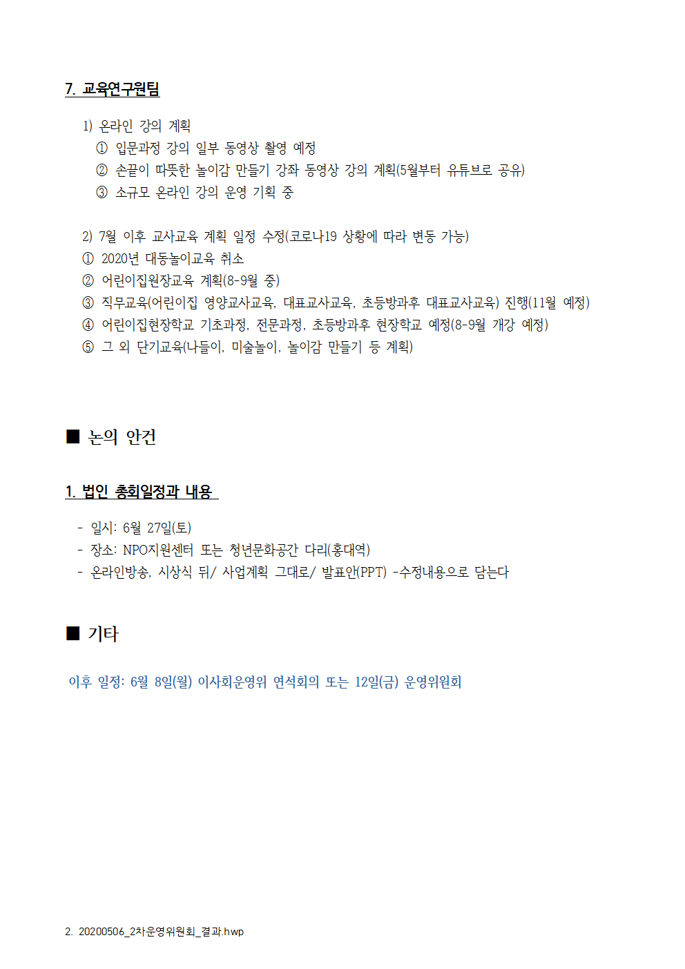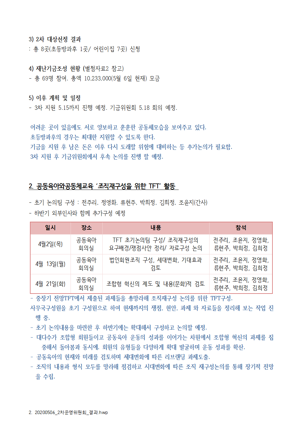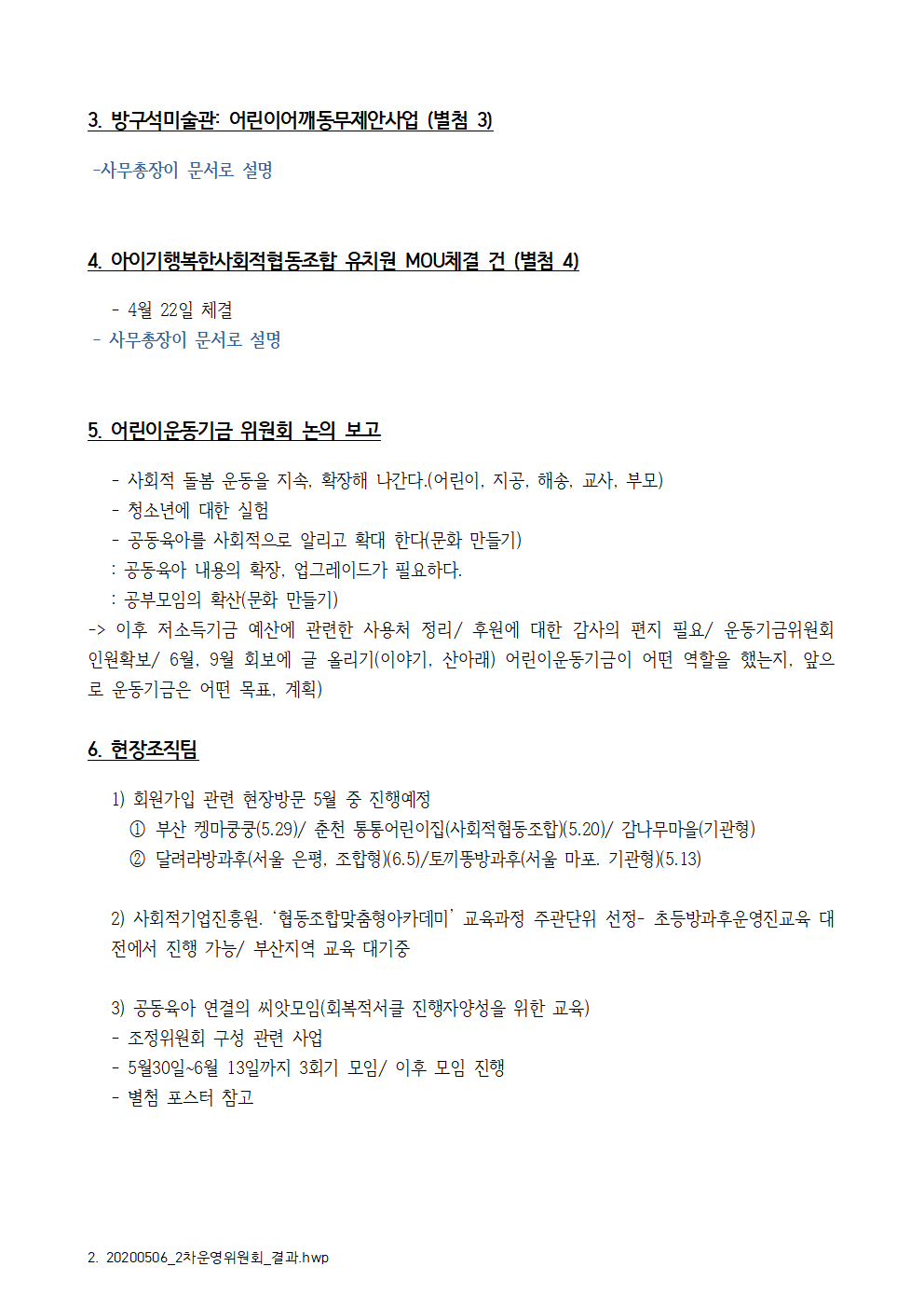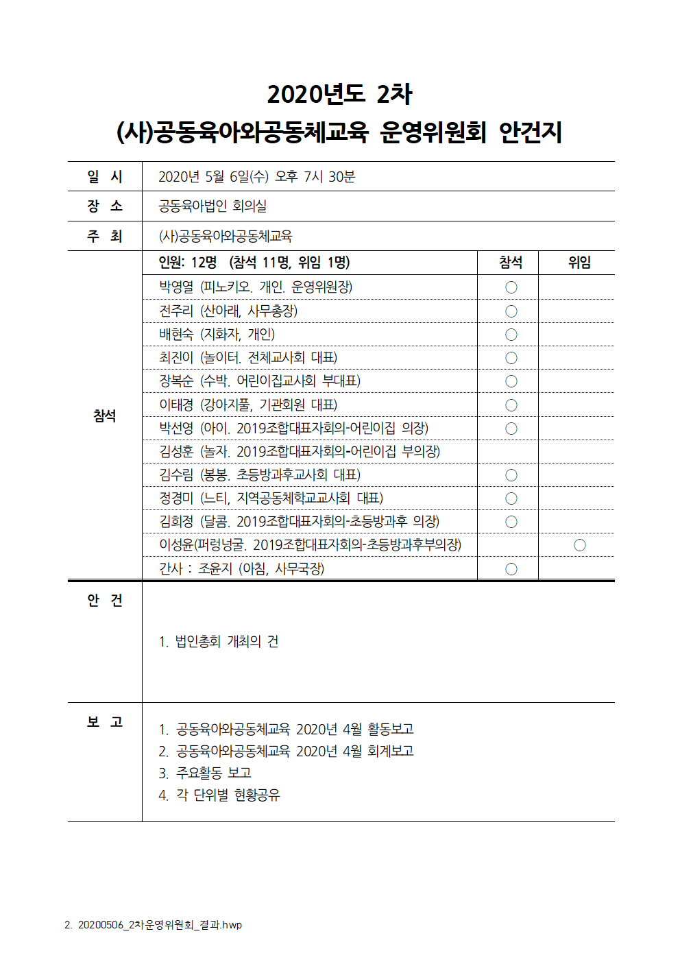 (사)공동육아와공동체교육 2020년 5월 운영위원회 회의_결과