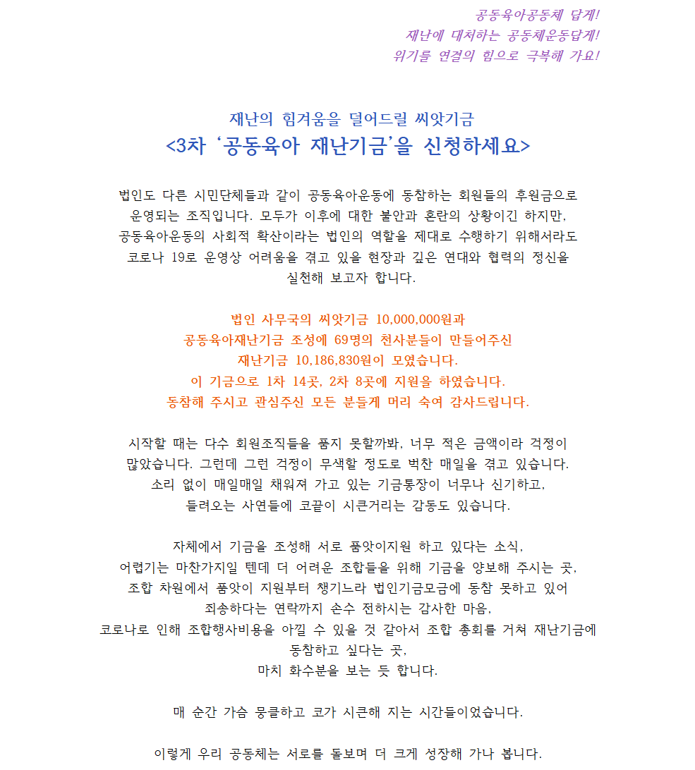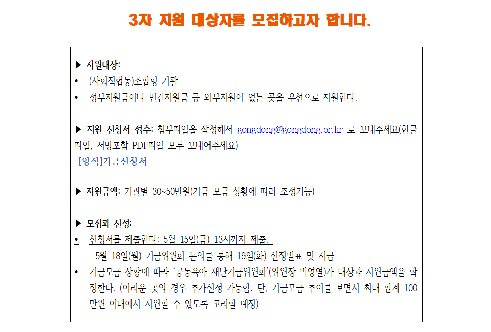 [공동육아재난기금위원회] 3차 재난기금 신청하세요
