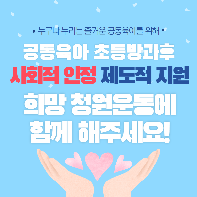 <공동육아초등방과후의 사회적 인정과 제도적 지원을 희망하는 청원운동>에 함께 해 주세요.