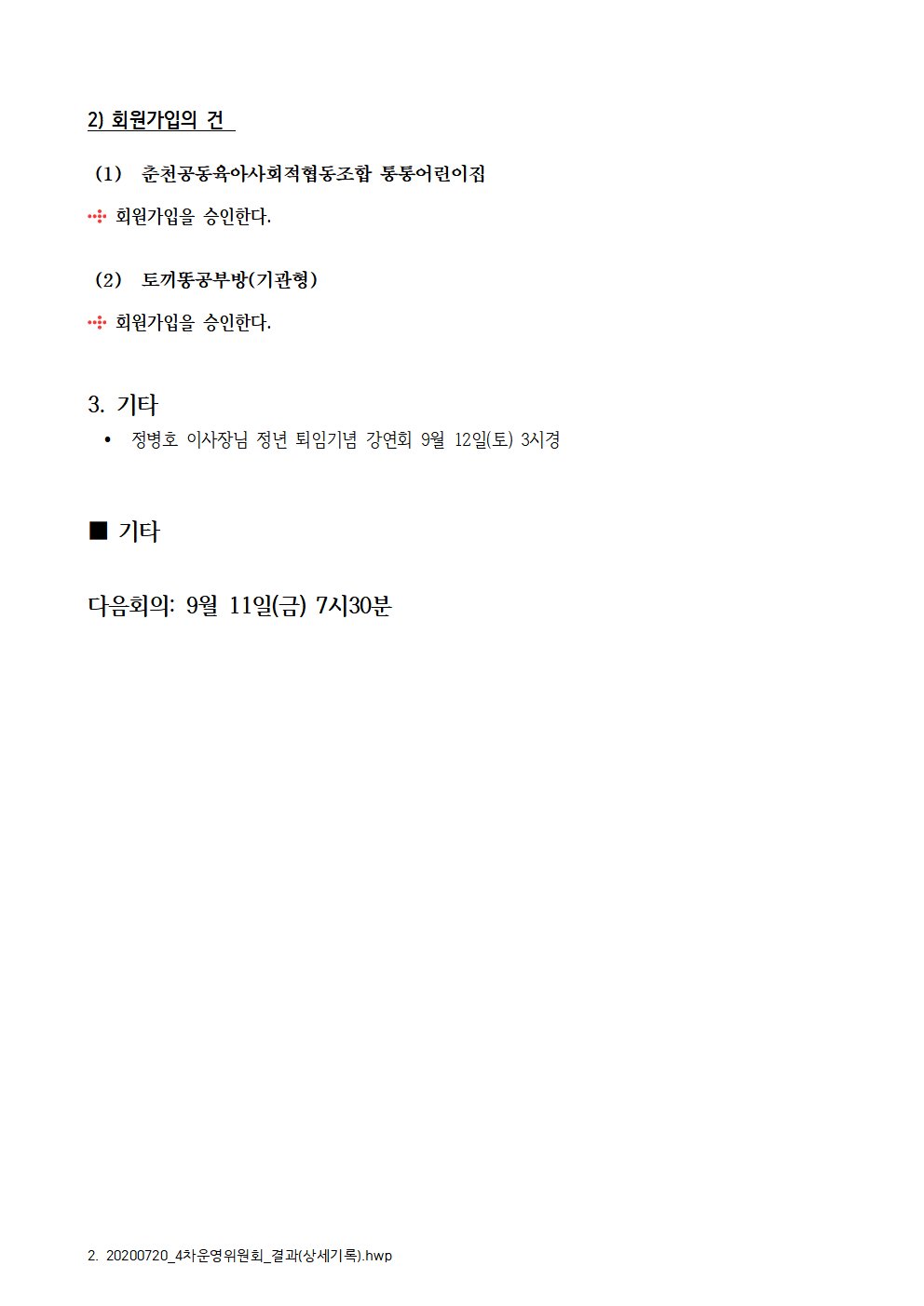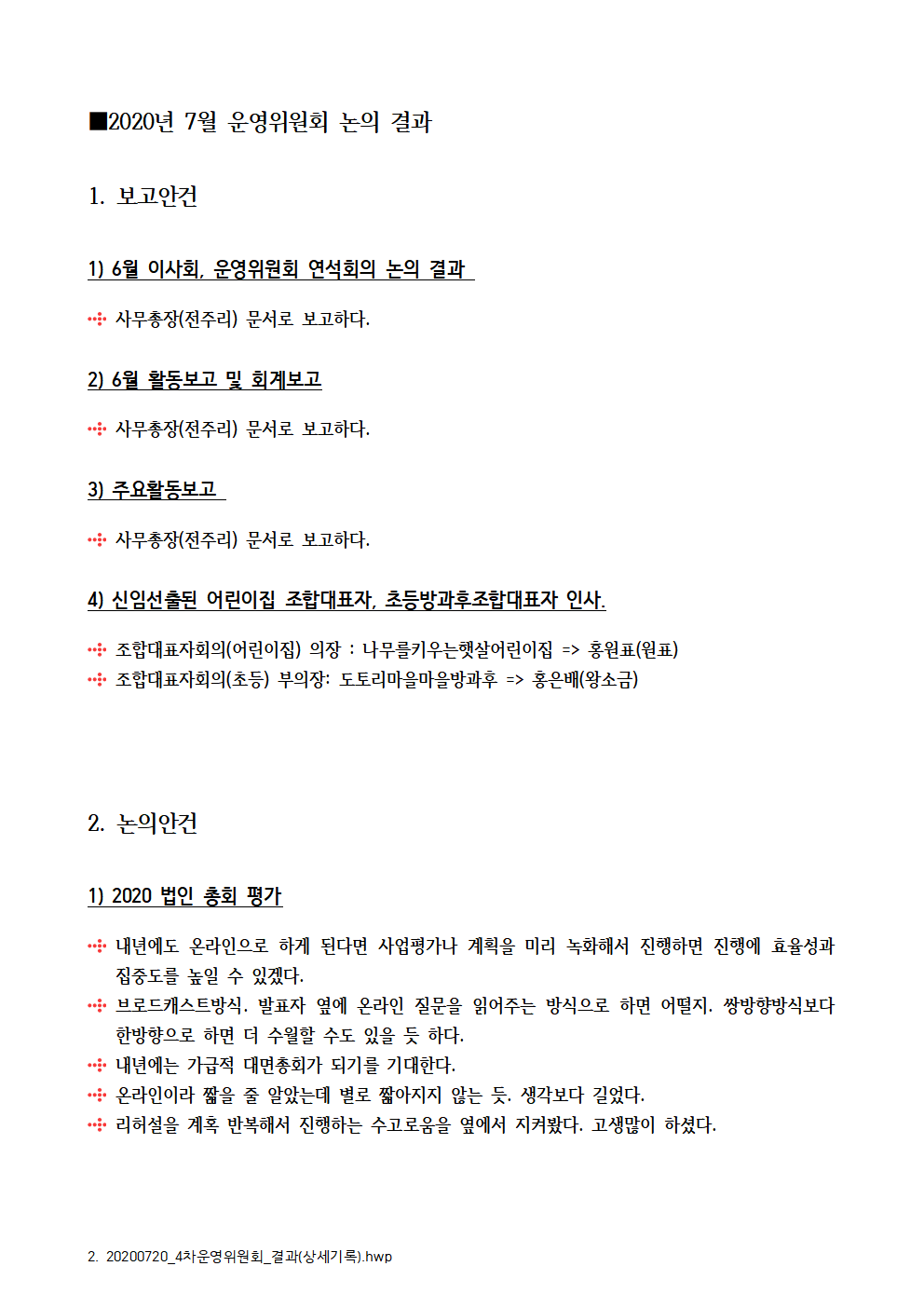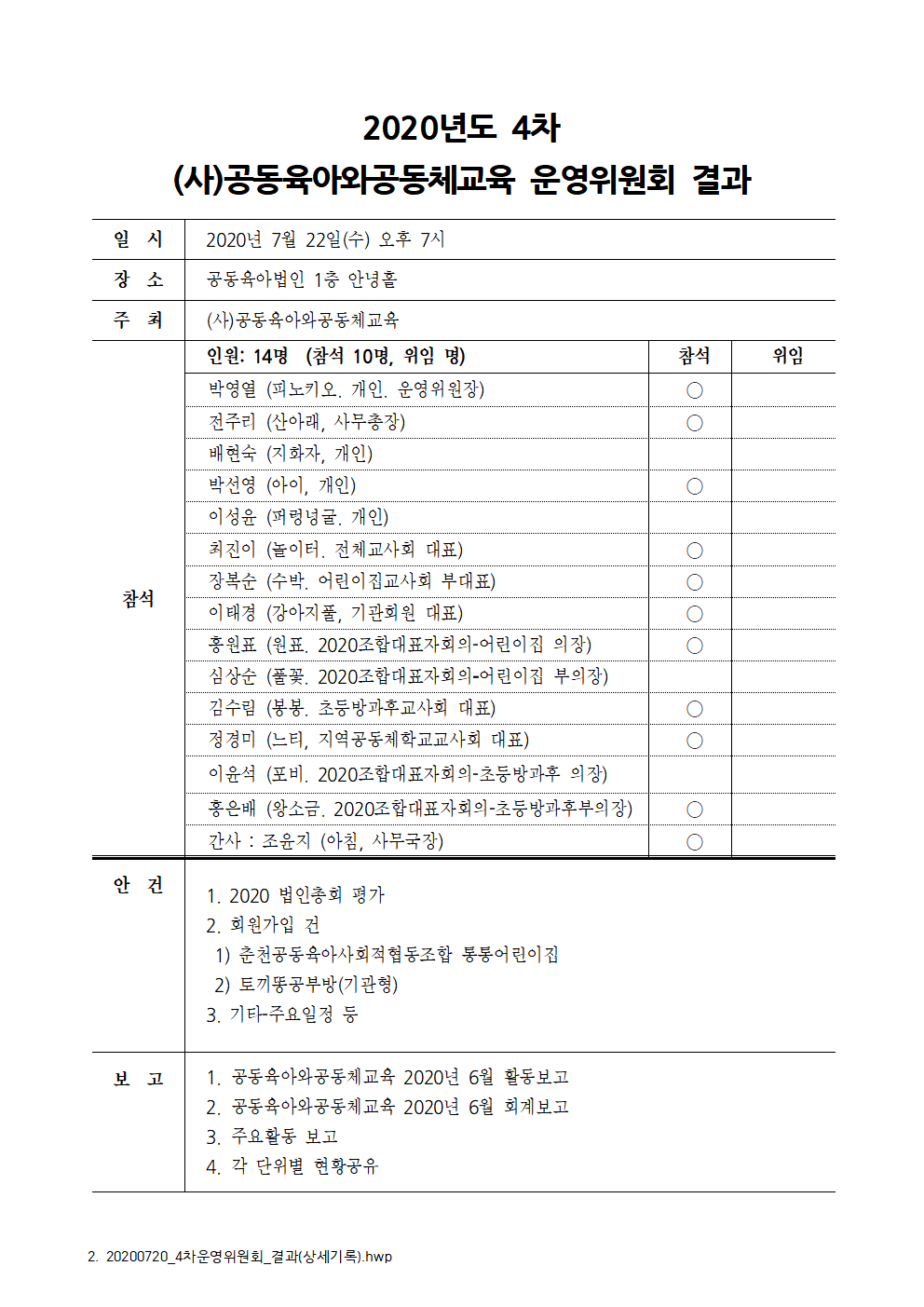 (사)공동육아와공동체교육 2020년 7월 운영위원회 회의_결과