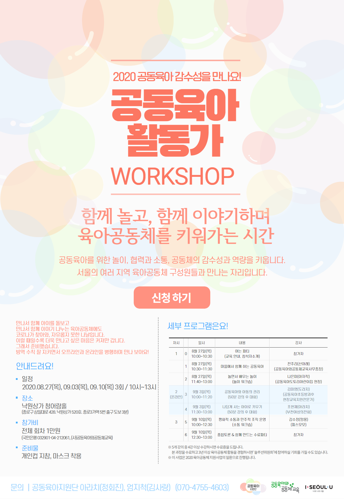 [공동육아지원단] 2020 공동육아 활동가 워크숍 안내 페이지 정보 작성자 운영자 작성일20-07-29 12:35 조회1,644회 본문 댓글목록 등록된 댓글이 없습니다. 이전글 다음글 목록