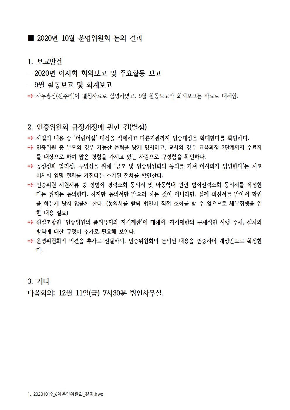 (사)공동육아와공동체교육 2020년 6차 운영위원회 회의_결과