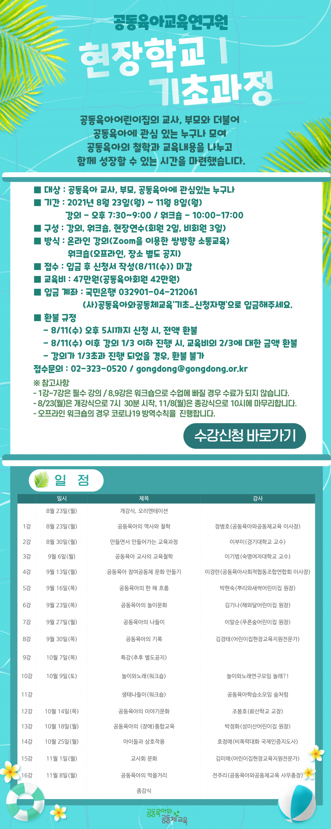 [공동육아교육연구원] 2021년 공동육아어린이집 현장학교 기초과정 안내
