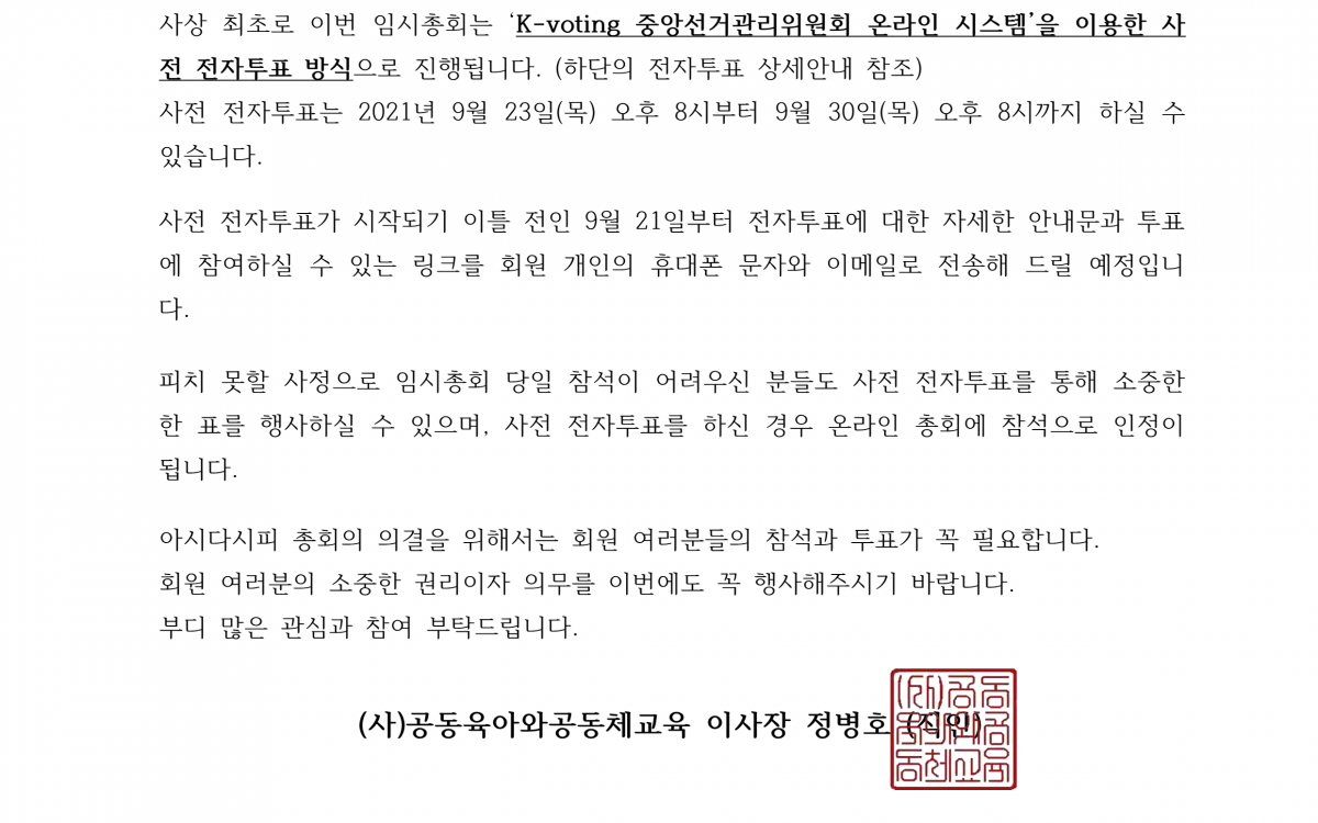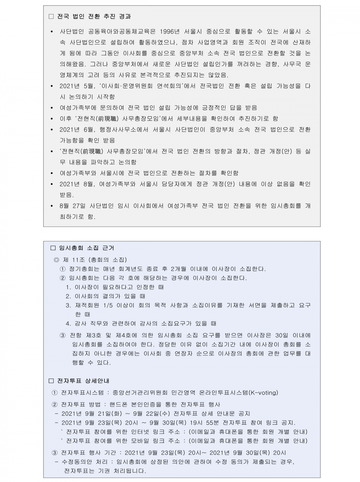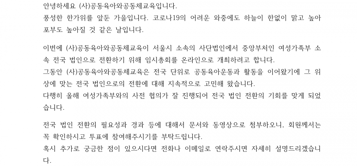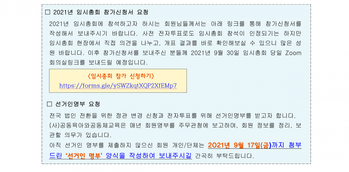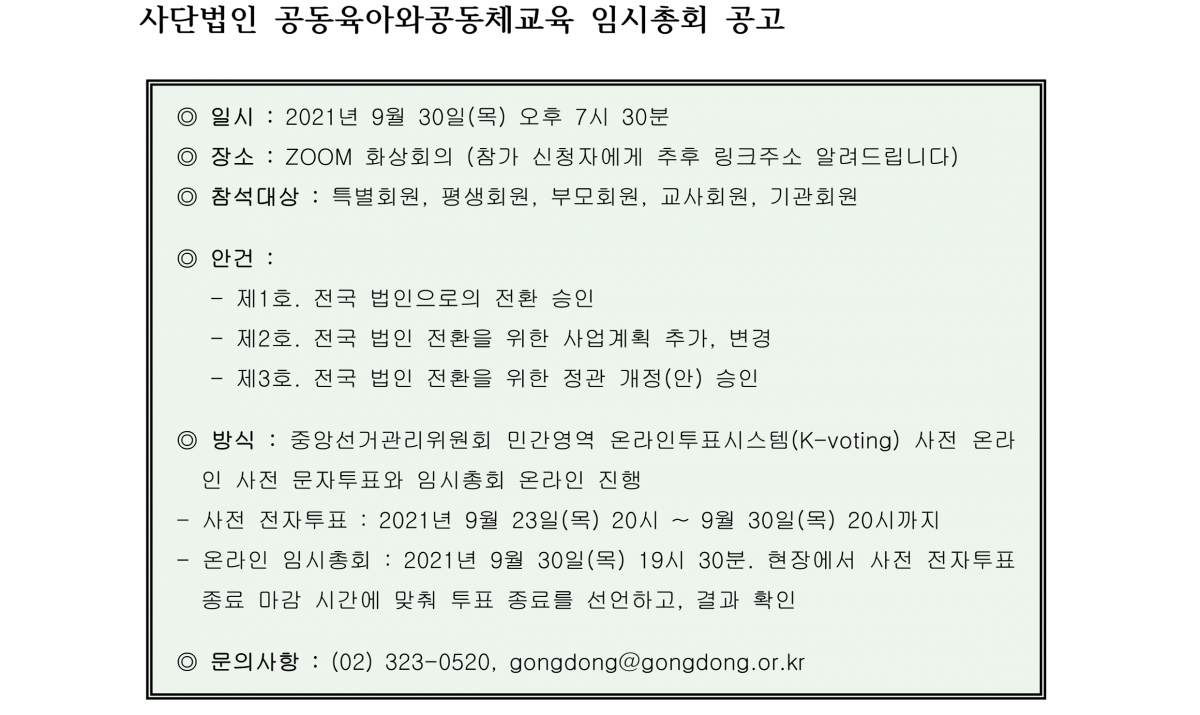 ☆★ 사단법인 공동육아와공동체교육 임시총회 공고 ★☆