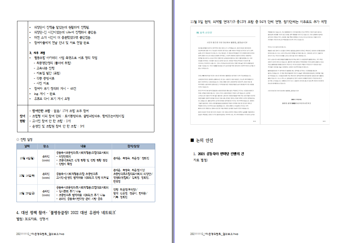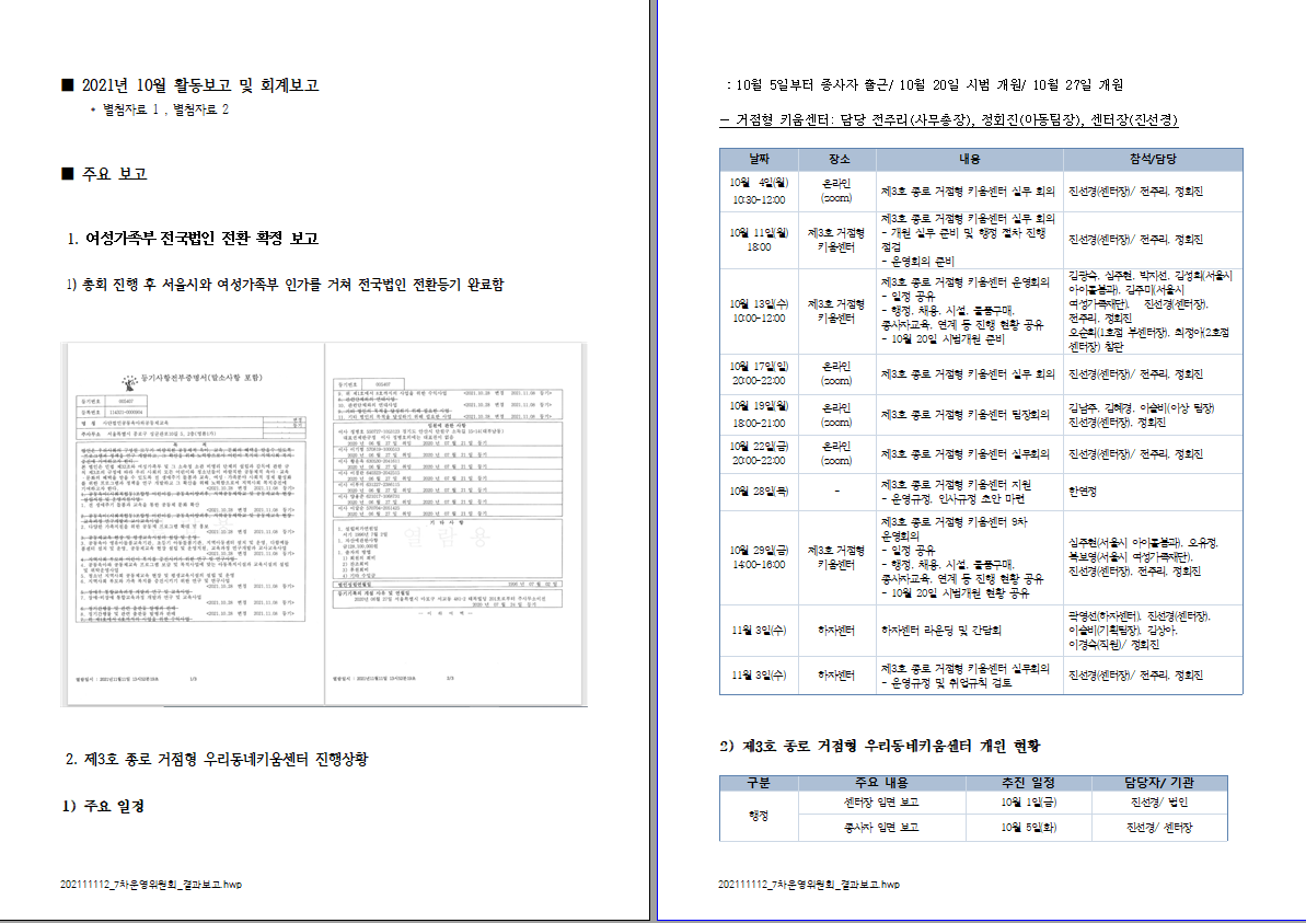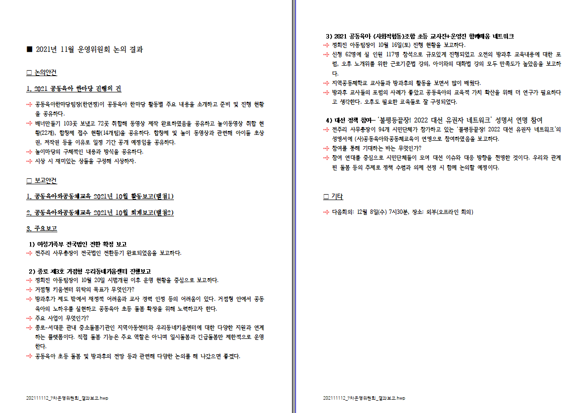 (사)공동육아와공동체교육 11월 제7차 운영위원회 결과 보고드립니다.