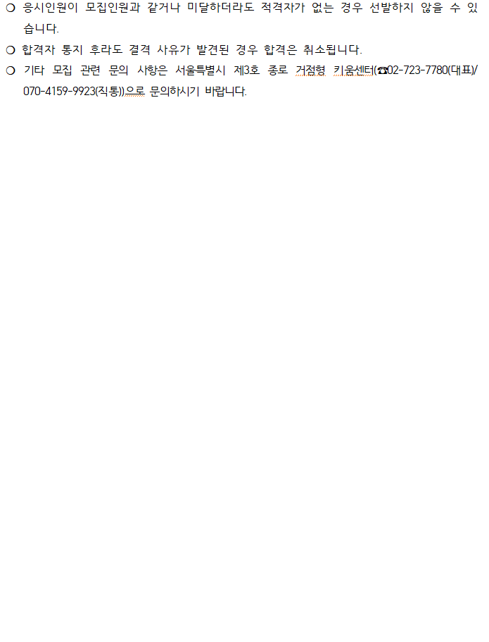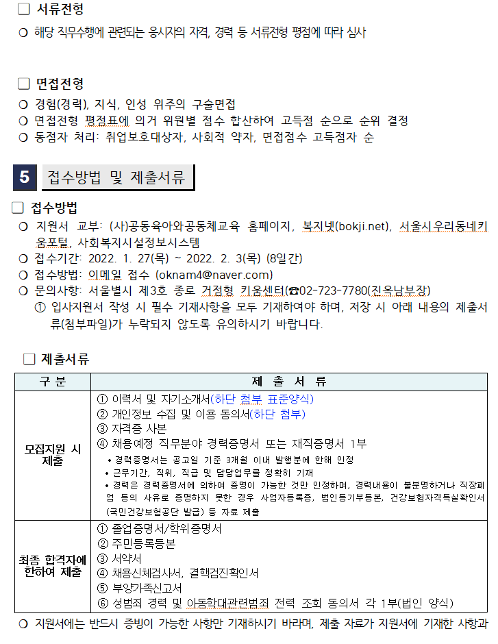 서울시 제3호(종로) 거점형 키움센터 채용 재공고(행정팀, 5급)