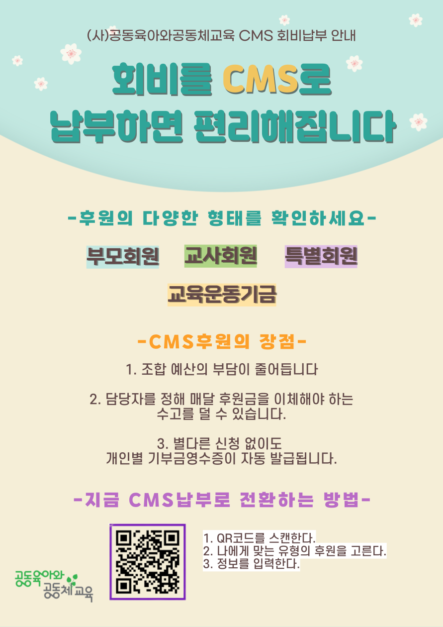 (사)공동육아와공동체교육 "회비를 CMS로 납부하면 편리해집니다"