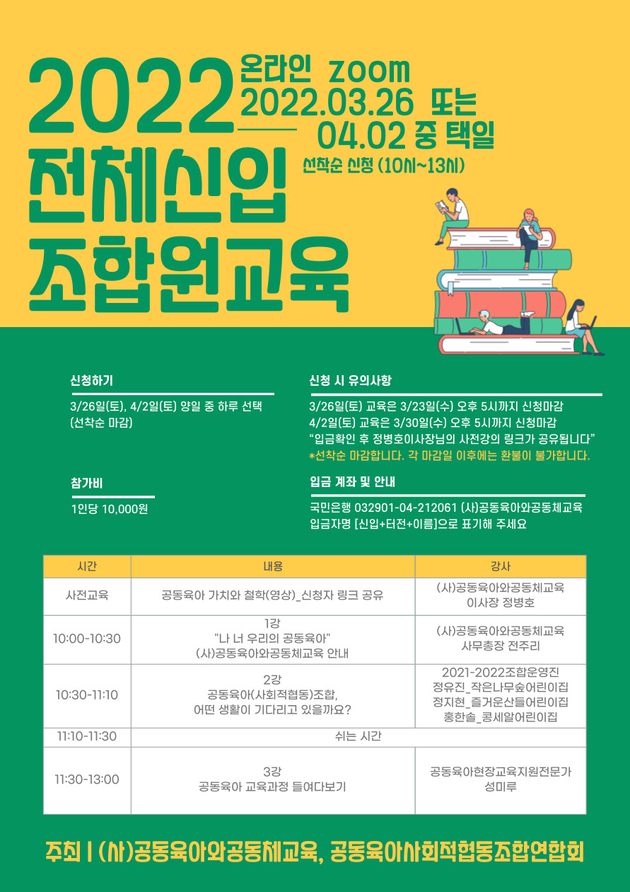 2022년 공동육아 (사회적협동)조합 전체 신입조합원 교육 공지
