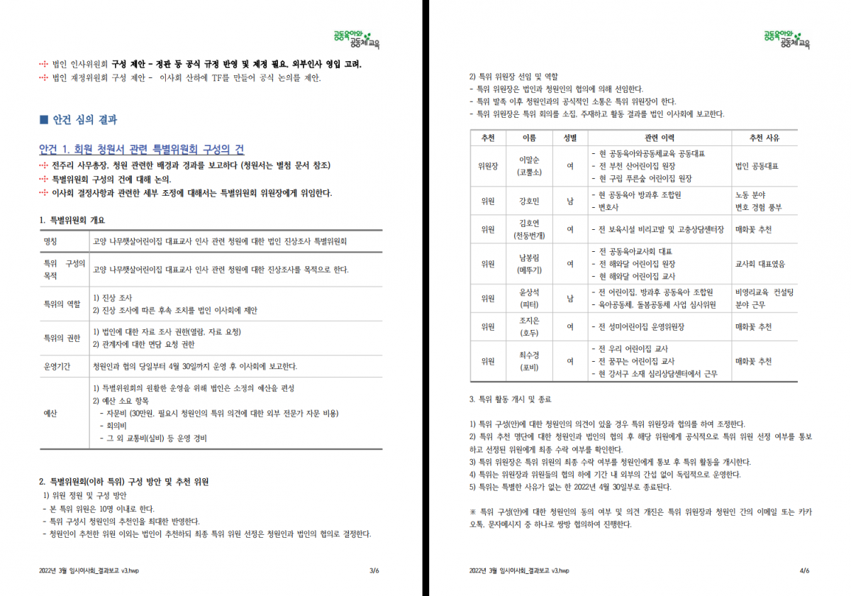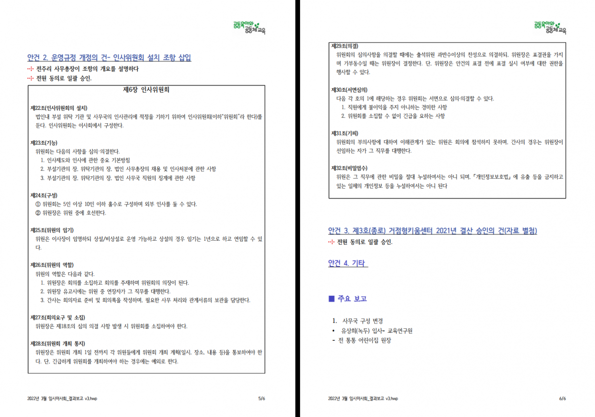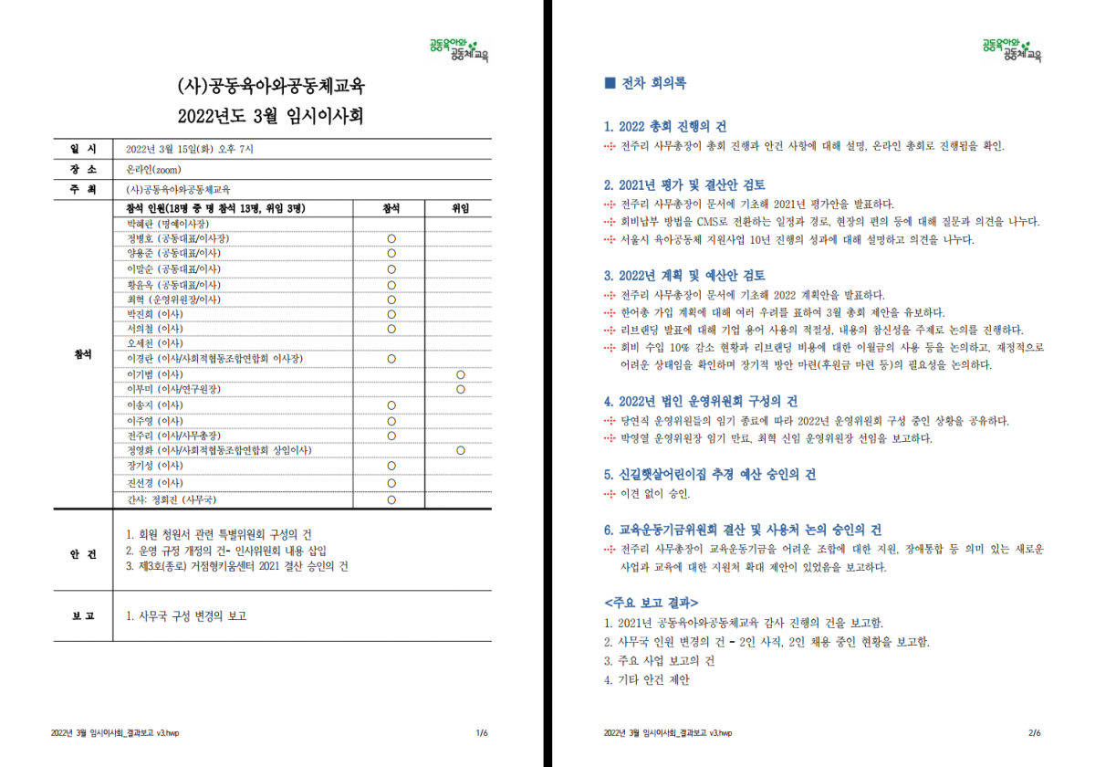 (사)공동육아와공동체교육 3월 임시 이사회 결과 보고 드립니다.