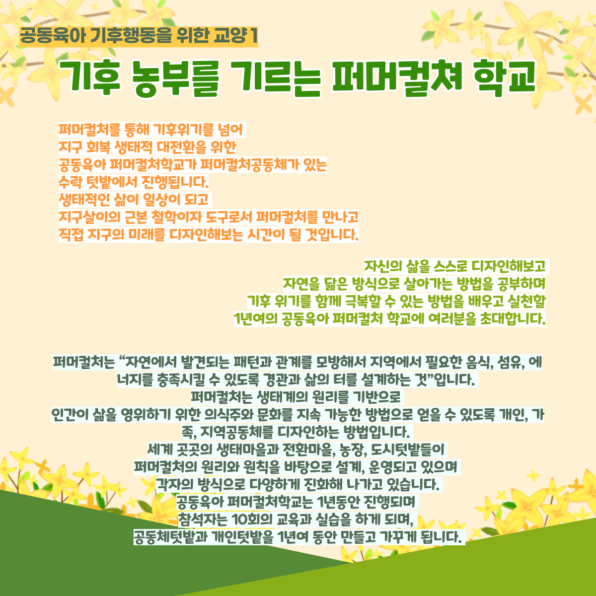 [공동육아 기후행동을 위한 교양 1] 기후농부를 기르는 공동육아 퍼머컬처학교 페이지 정보 작성자 운영자 작성일22-04-06 13:19 조회900회 본문 댓글목록 등록된 댓글이 없습니다. 이전글 다음글 목록