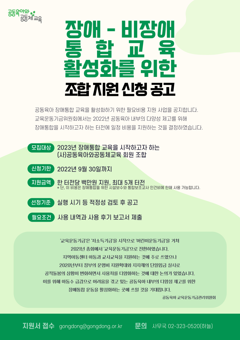 공동육아 장애-비장애 통합 교육 활성화를 위한 조합 지원 신청 공고