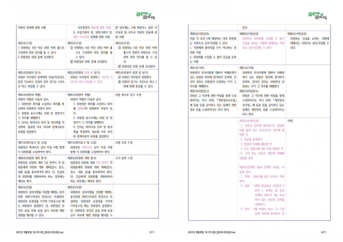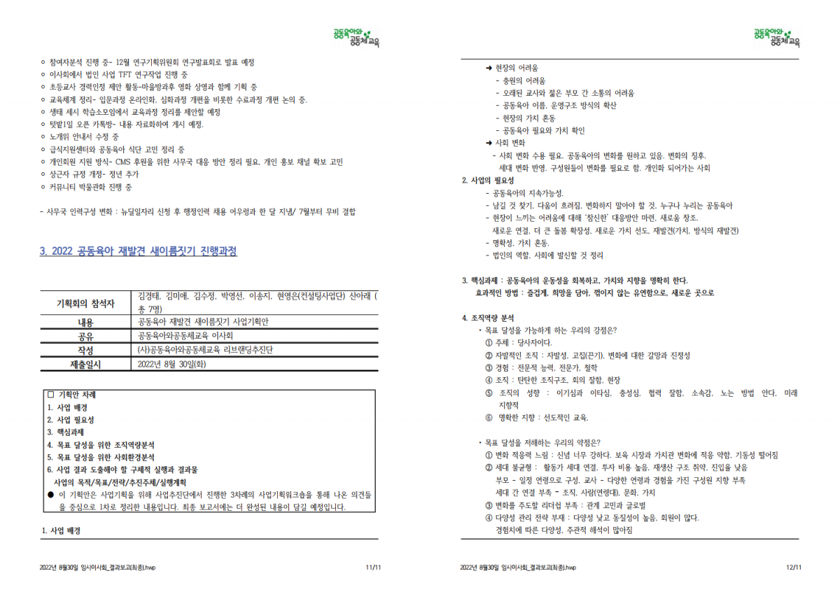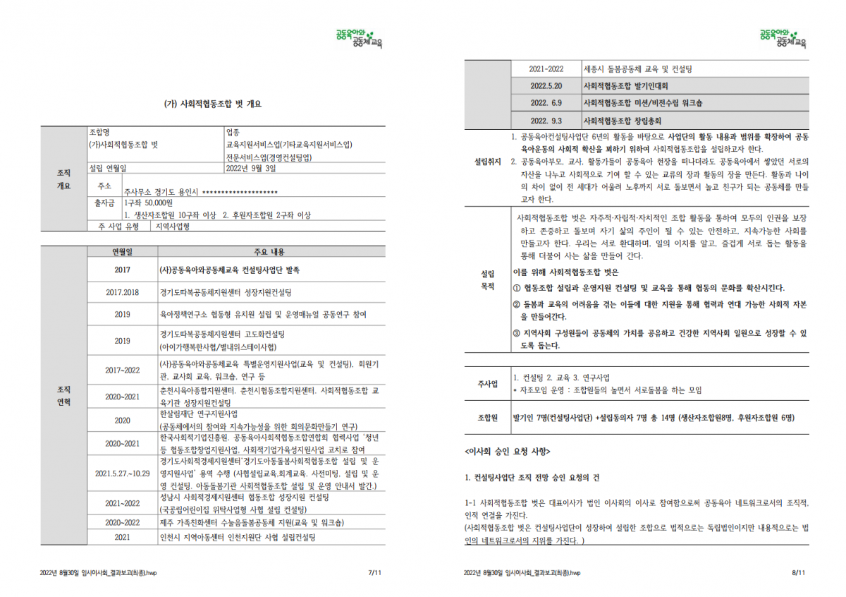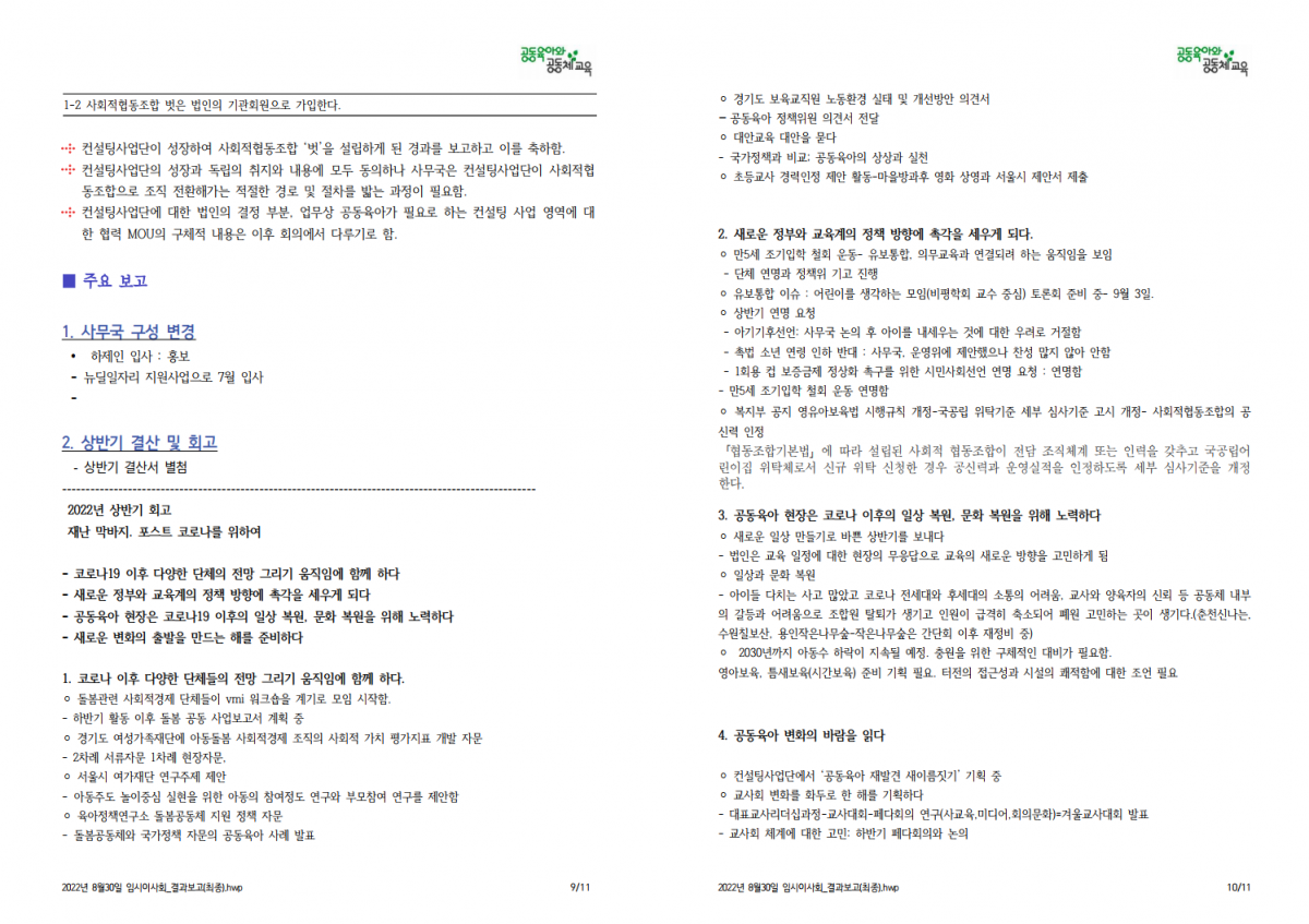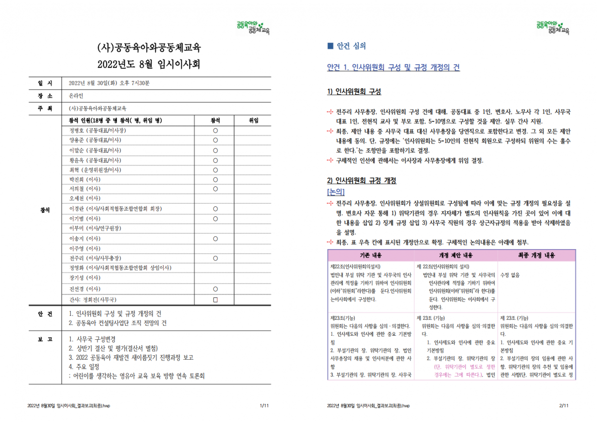(사)공동육아와공동체교육 8월 임시 이사회 결과 보고 드립니다.