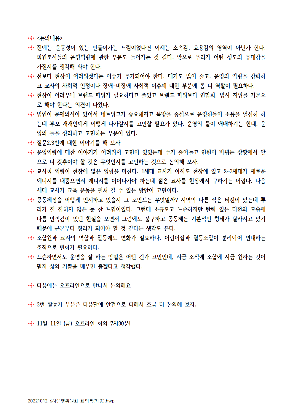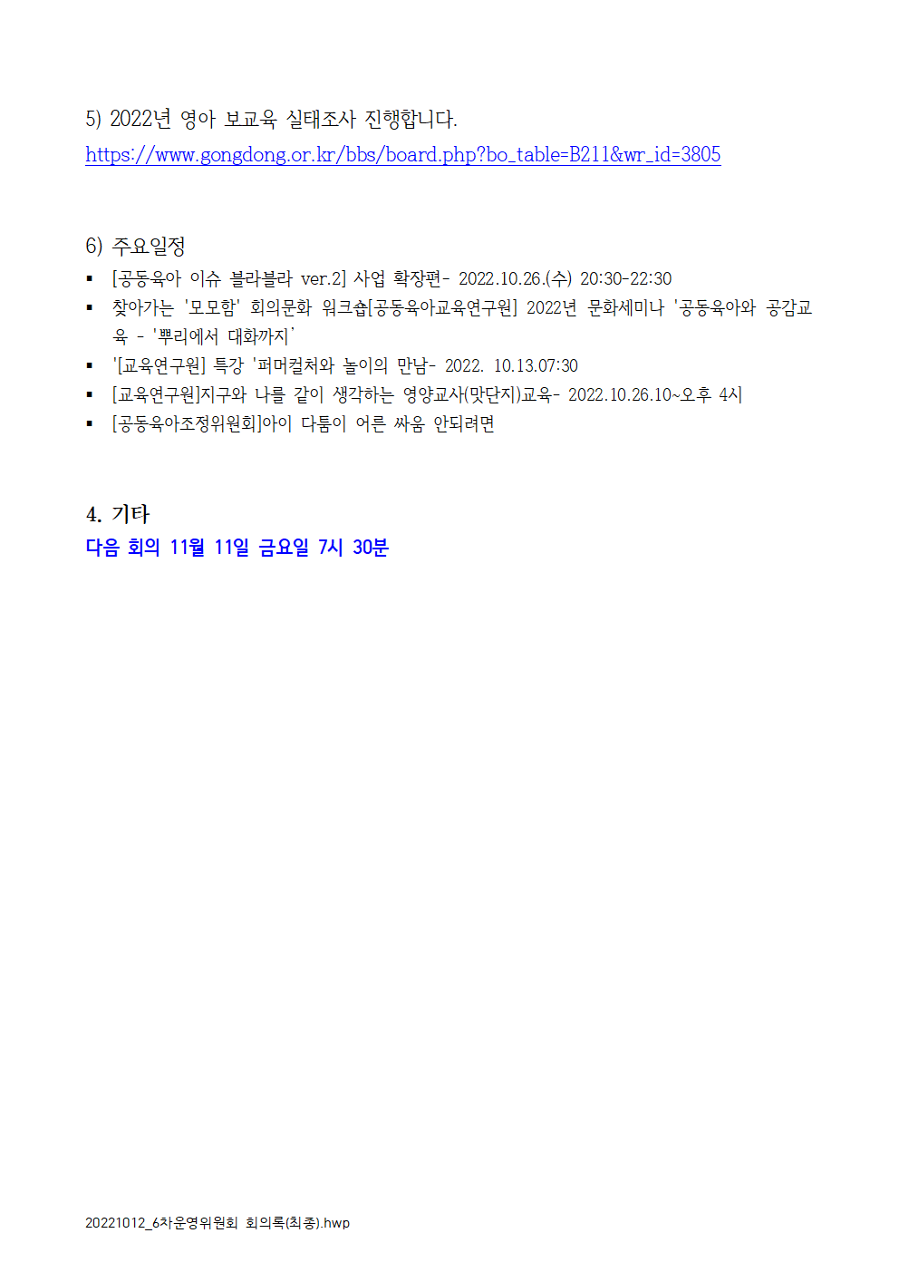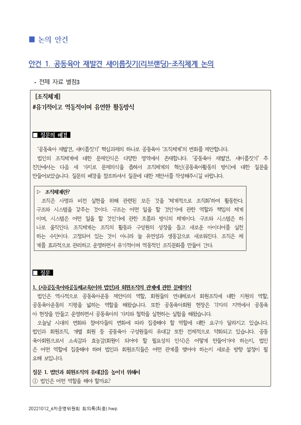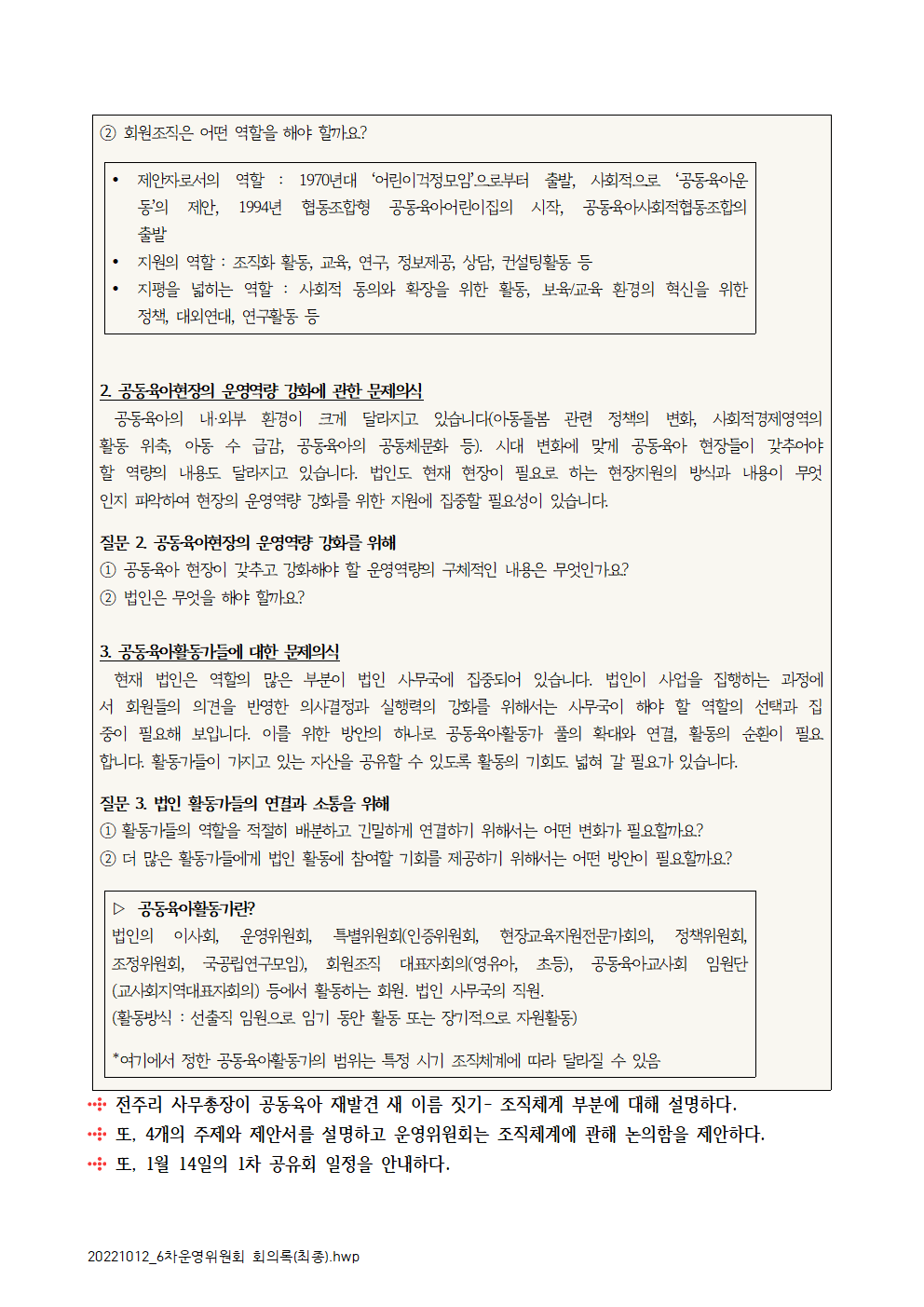 (사)공동육아와공동체교육 10월 운영위원회 결과 보고드립니다. (9월 활동보고, 9월 회계보고 별첨)