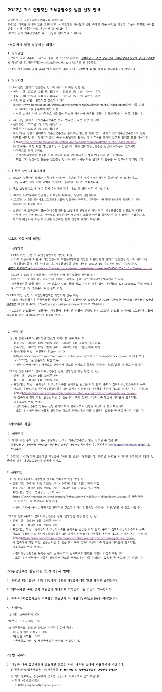 2022년 귀속 연말정산 기부금영수증 발급 신청 안내
