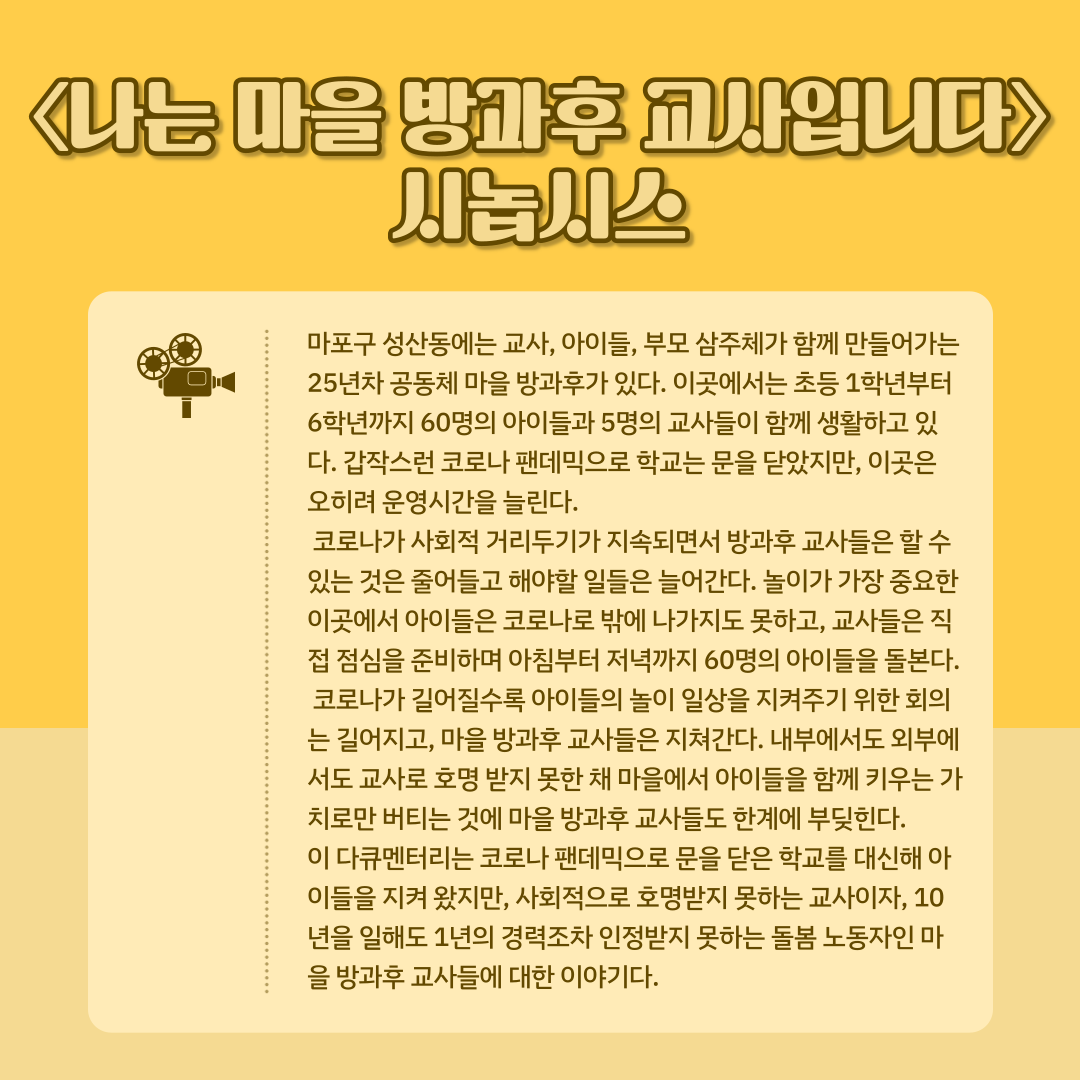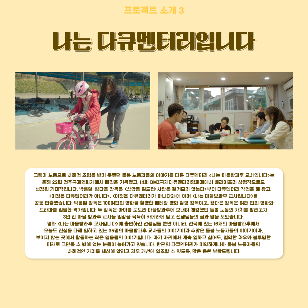 <나는 마을 방과후 교사입니다> 극장개봉지원 프로젝트를 지지하고 함께합니다! 페이지 정보 작성자 운영자 작성일22-12-16 13:43 조회931회 본문 텀블벅 바로가기 > https://www.tumblbug.com/0112 댓글목록 등록된 댓글이 없습니다. 이전글 다음글 목록