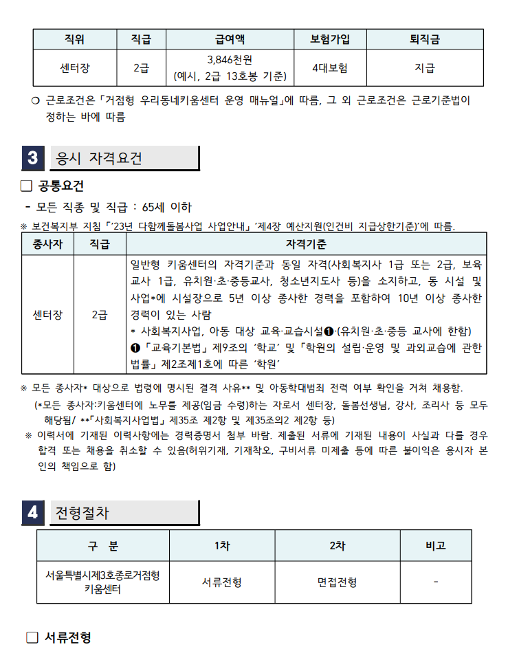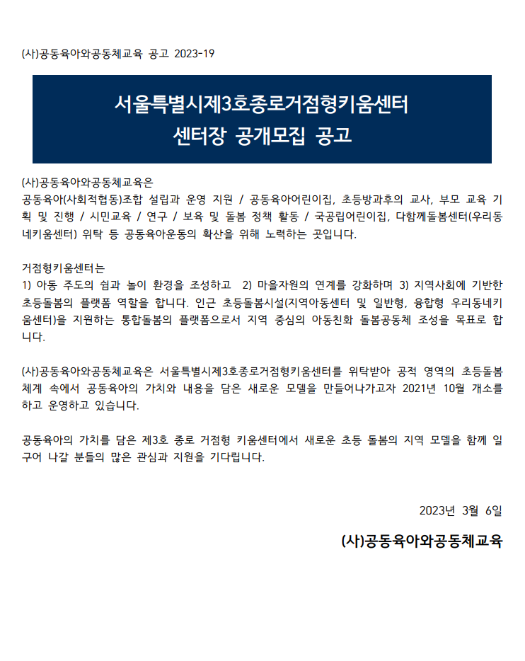 서울시 제3호 종로 거점형 키움센터 센터장 채용 공고(~3/20)